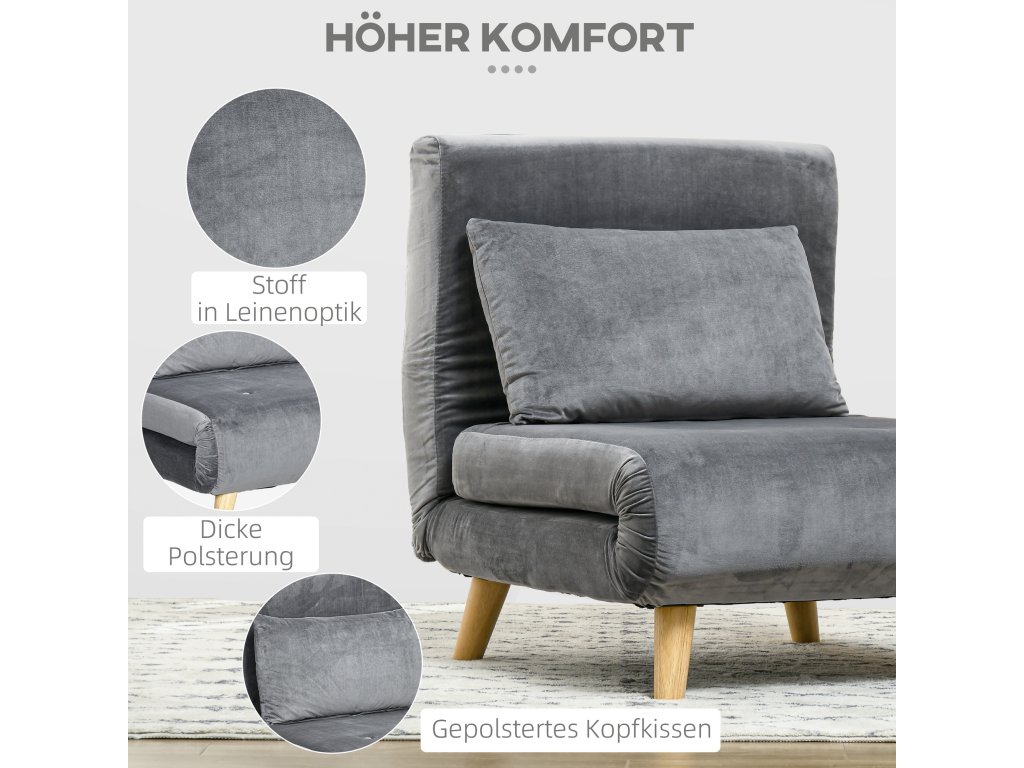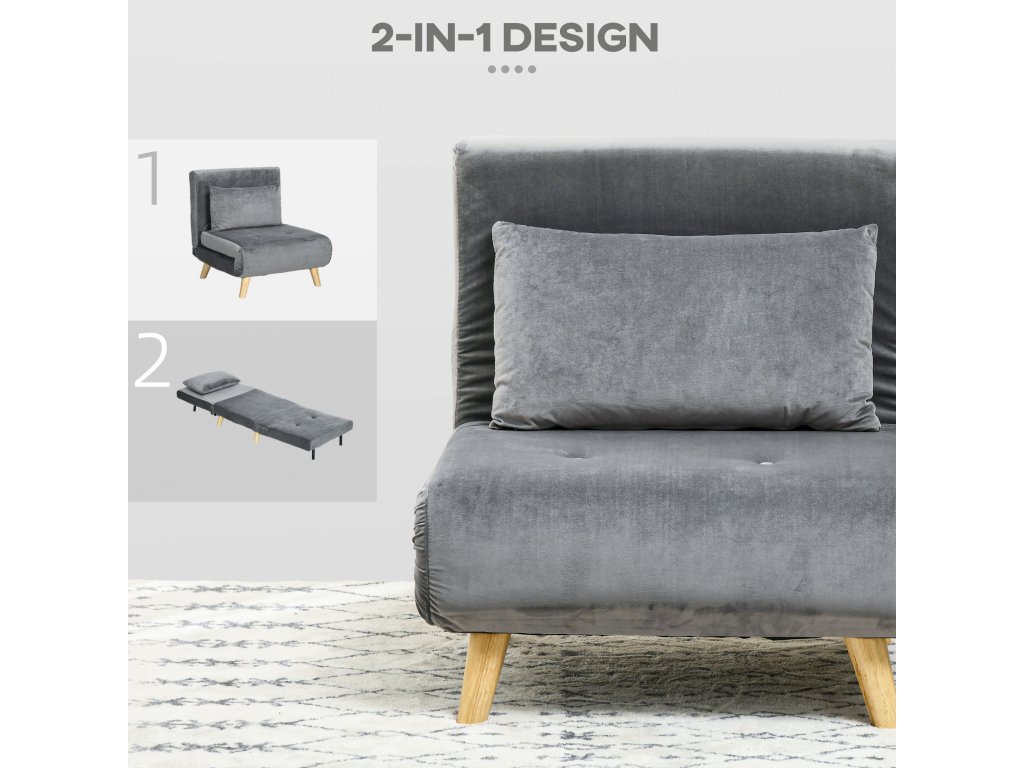 HOMCOM Skládací křeslo s funkcí lůžka a polštářem, lůžko pro hosty s nastavitelným opěradlem, sametový vzhled, do 125 kg, šedé| Aosom