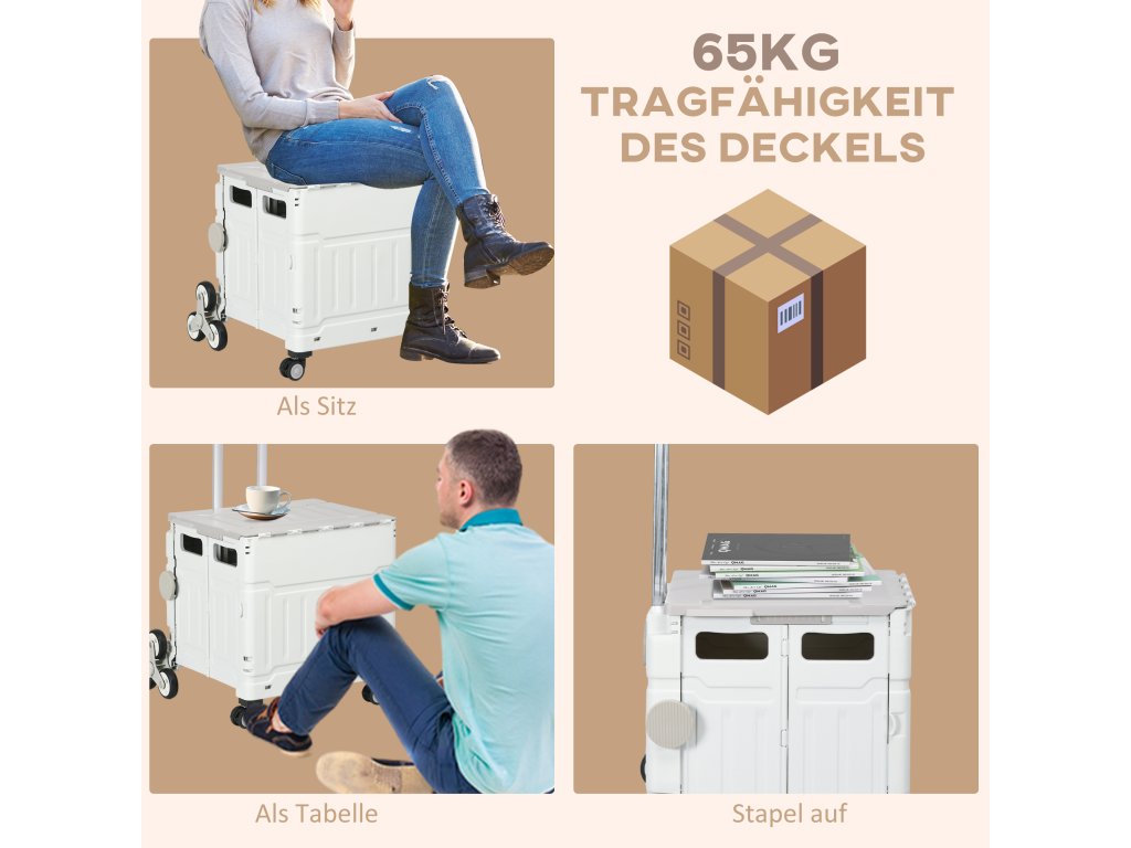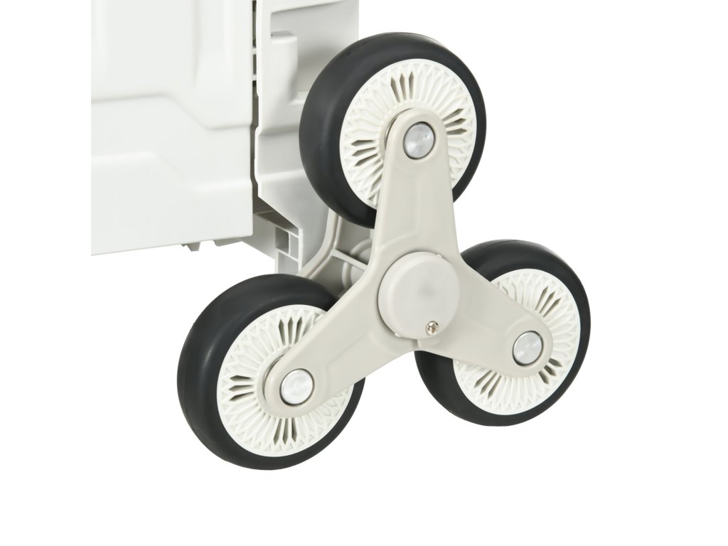 Skládací nákupní vozík od společnosti HOMCOM s kolečky pro stoupání po schodech a nastavitelnou teleskopickou rukojetí je praktickým pomocníkem pro přepravu věcí. Je ideální na nákupy, do kanceláře, školy nebo skladu a v případě potřeby jej lze použít i jako stolek nebo sedátko. Díky své lehké konstrukci a vysoké nosnosti 80 kg je nákupní vozík ideálním společníkem pro vaše cesty za nákupy.