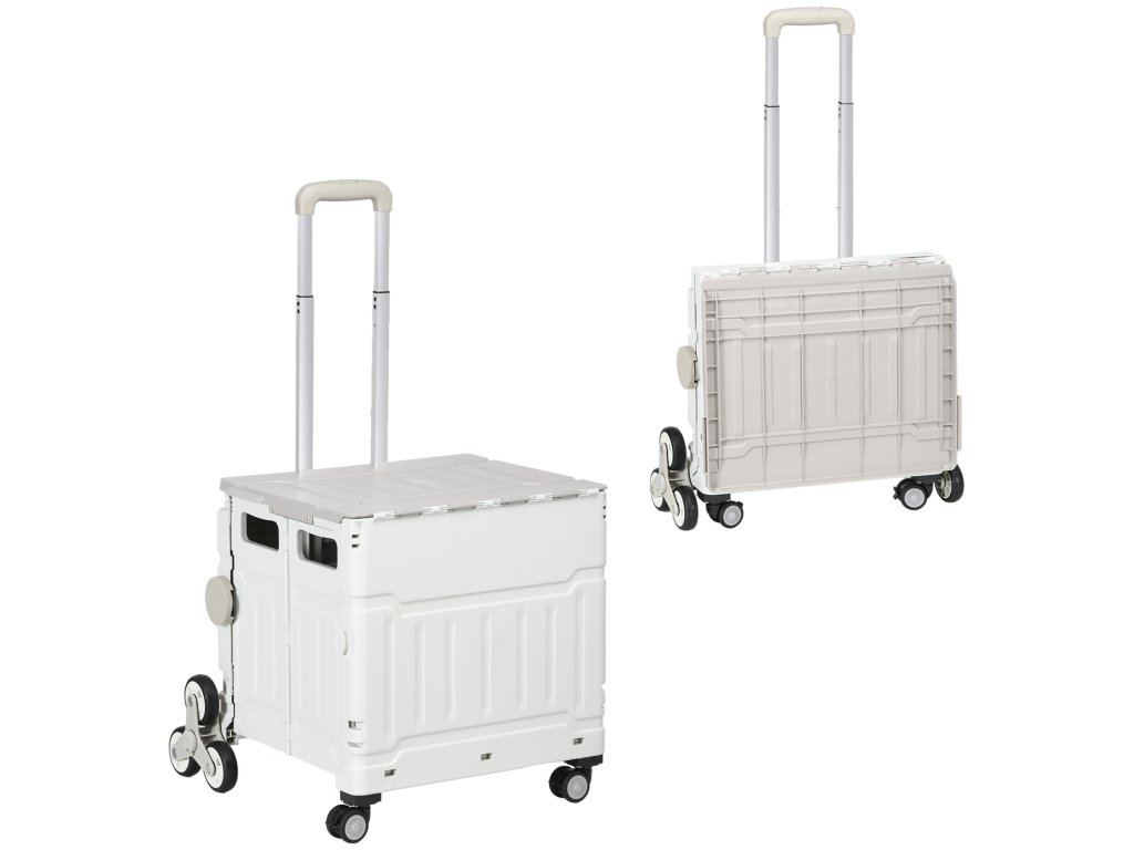 HOMCOM Skládací nákupní vozík s nastavitelnou teleskopickou rukojetí, schodolez do 80 kg, s víkem, bílý, na nákupy a cestování | Aosom.de
