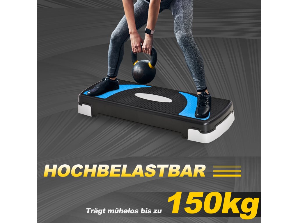 HOMCOM Stepping board aerobic stepper výškově nastavitelný ve 3 úrovních (10/15/20cm), fitness rotoped, do 150 kg, světle modrý, 80x31x10-20 cm| Aosom