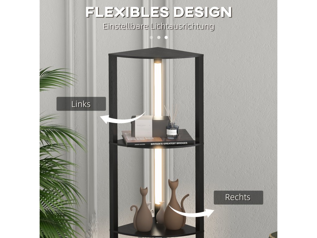 - Praktické police: Tato moderní stojací lampa poskytuje nejen světlo, ale také čtyři praktické police pro odkládání a vystavování předmětů, jako jsou dálkové ovladače, knihy, dekorace, rostliny a fotografie