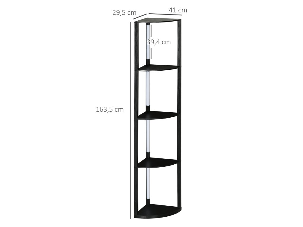 HOMCOM Stojací lampa, LED stojací lampa se 4 policemi, patice E27, 24 W, 3 barvy světla, do obývacího pokoje, ložnice, černá | Aosom