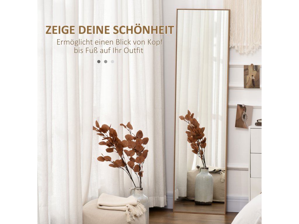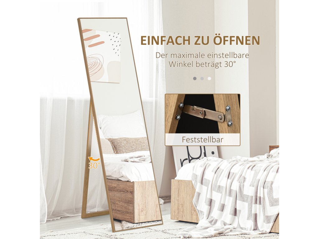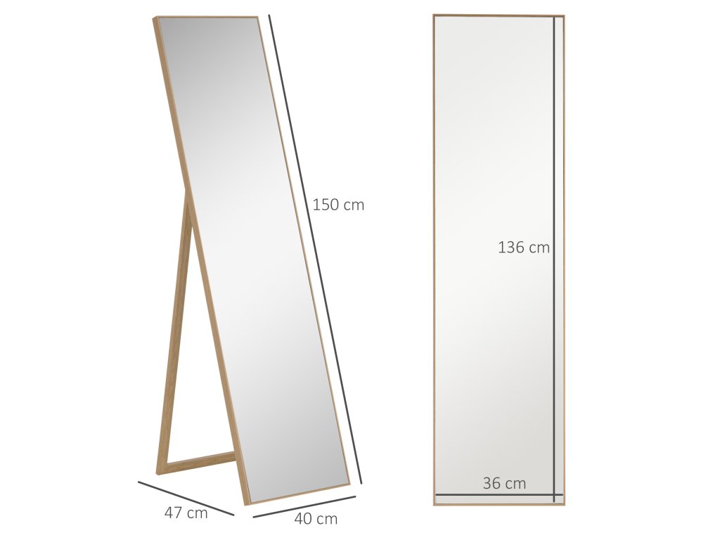 - Provedení po celé délce: Celková délka stojícího zrcadla je dokonalá a umožňuje vám prohlédnout si oblečení od hlavy až k patě. Díky němu také váš pokoj vypadá opticky větší.