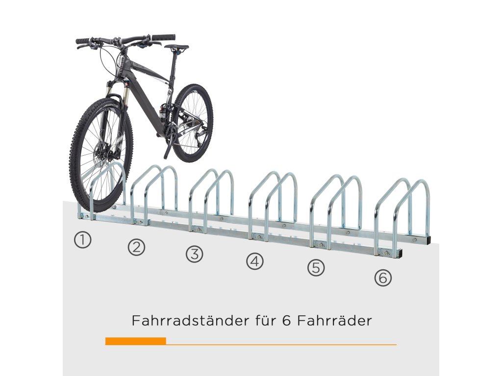 HOMCOM Stojan na kola až pro 6 jízdních kol odolný proti povětrnostním vlivům odolná montáž na podlahu a stěnu z oceli stříbrná 179x33x27cm | Aosom.de
