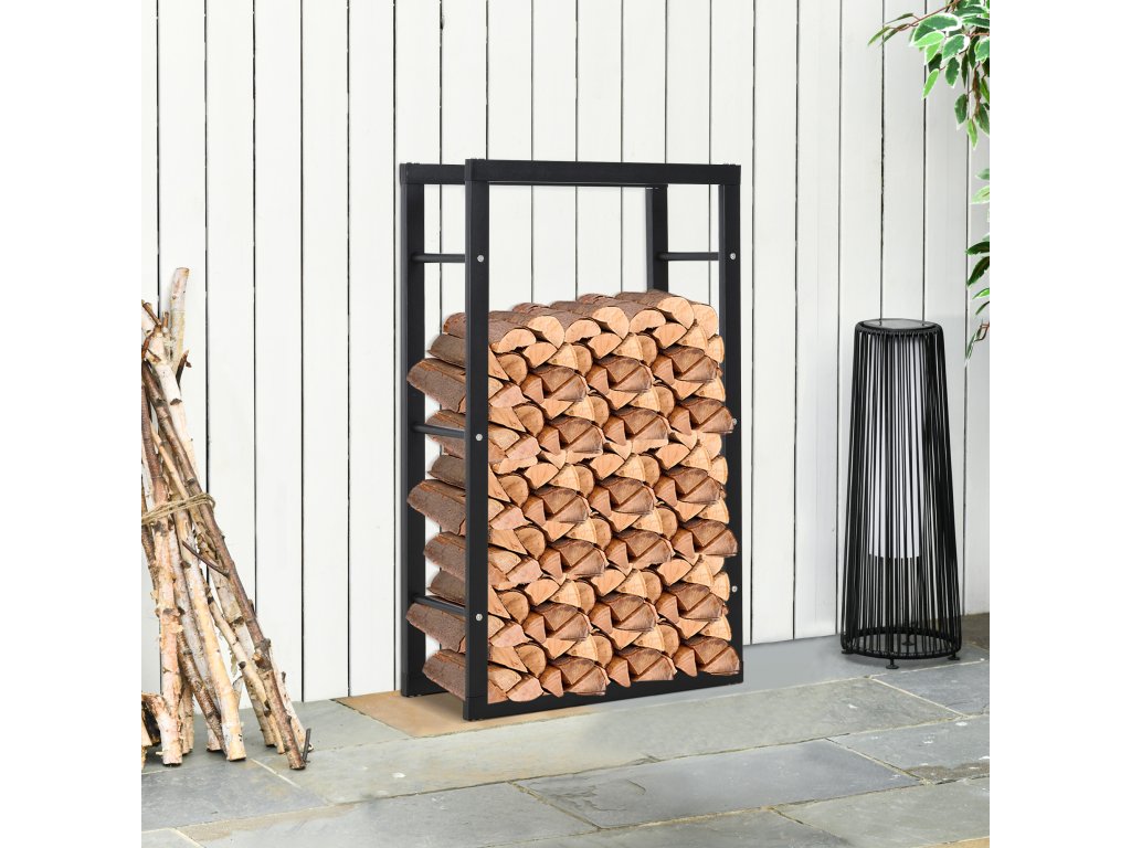 HOMCOM Stojan na palivové dřevo Stojan na palivové dřevo Stojan na palivové dřevo 100 kg Ocel černá D60 x Š25 x V100 cm | Aosom
