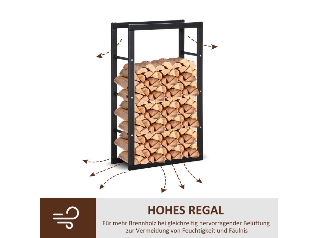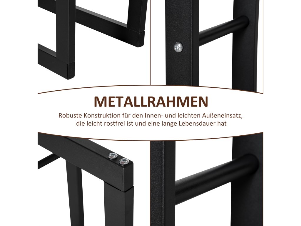- Vysoce kvalitní povrchová úprava: Černě lakovaná ocel vašeho zásobníku na palivové dřevo je stabilní a odolná. Chrání tak vaše palivové dřevo před zemní vlhkostí.