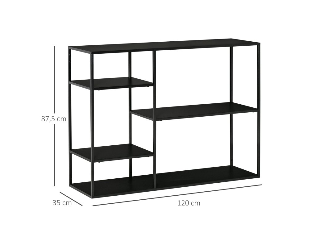 HOMCOM Stojící regál s 5 otevřenými přihrádkami, kovová police na dokumenty, černá, 120x35x87,5 cm do kuchyně a obývacího pokoje | Aosom.de
