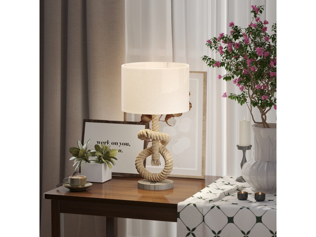 - Design inspirovaný námořnictvím: Tato stolní lampa s podstavcem z krouceného lana dodá vašemu domovu chladný a jedinečný styl.