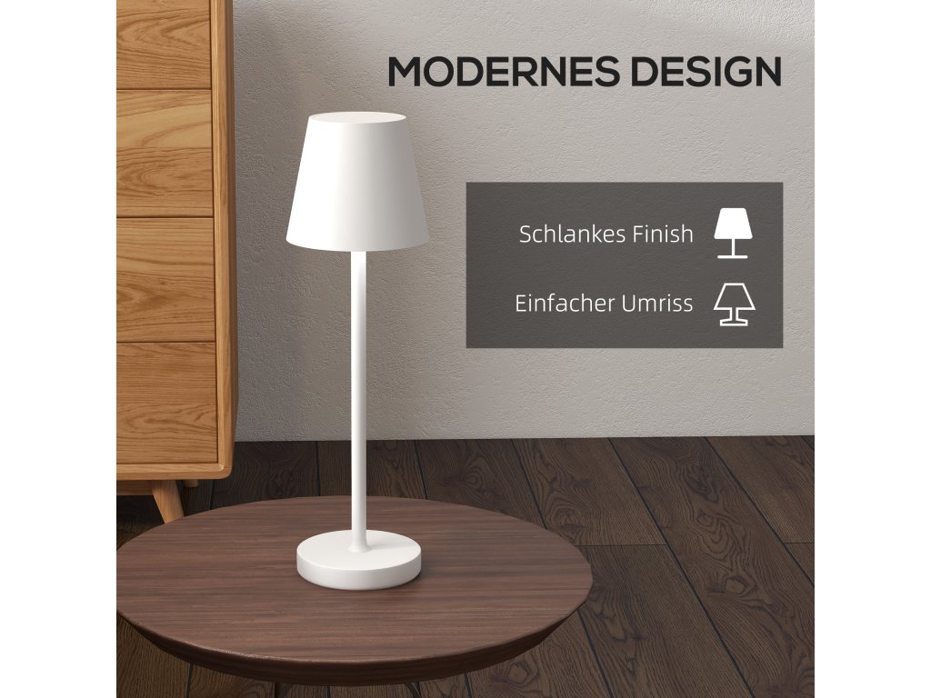 HOMCOM Stolní lampa Nabíjecí stolní lampa USB se 3 barvami světla Přenosná noční lampička s dotykovým vypínačem do obývacího pokoje Kovová bílá | Aosom.de