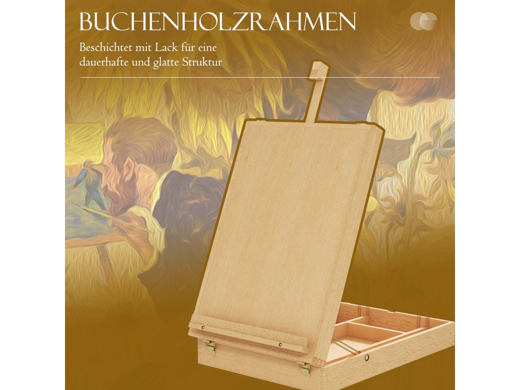 Rozvíjejte svou uměleckou stránku s naším vysoce kvalitním stolním stojanem HOMCOM! Vychutnejte si tvůrčí svobodu díky jeho nastavitelným parametrům, které jsou ideální pro to, abyste dali volný průchod své vnitřní múze. Díky úložným přihrádkám na štětce, barvy a mnoho dalšího budete mít ve všem pořádek! Stojan je vyroben z kvalitního bukového dřeva. Popusťte uzdu své fantazii a vytvořte podmínky pro svůj umělecký talent!