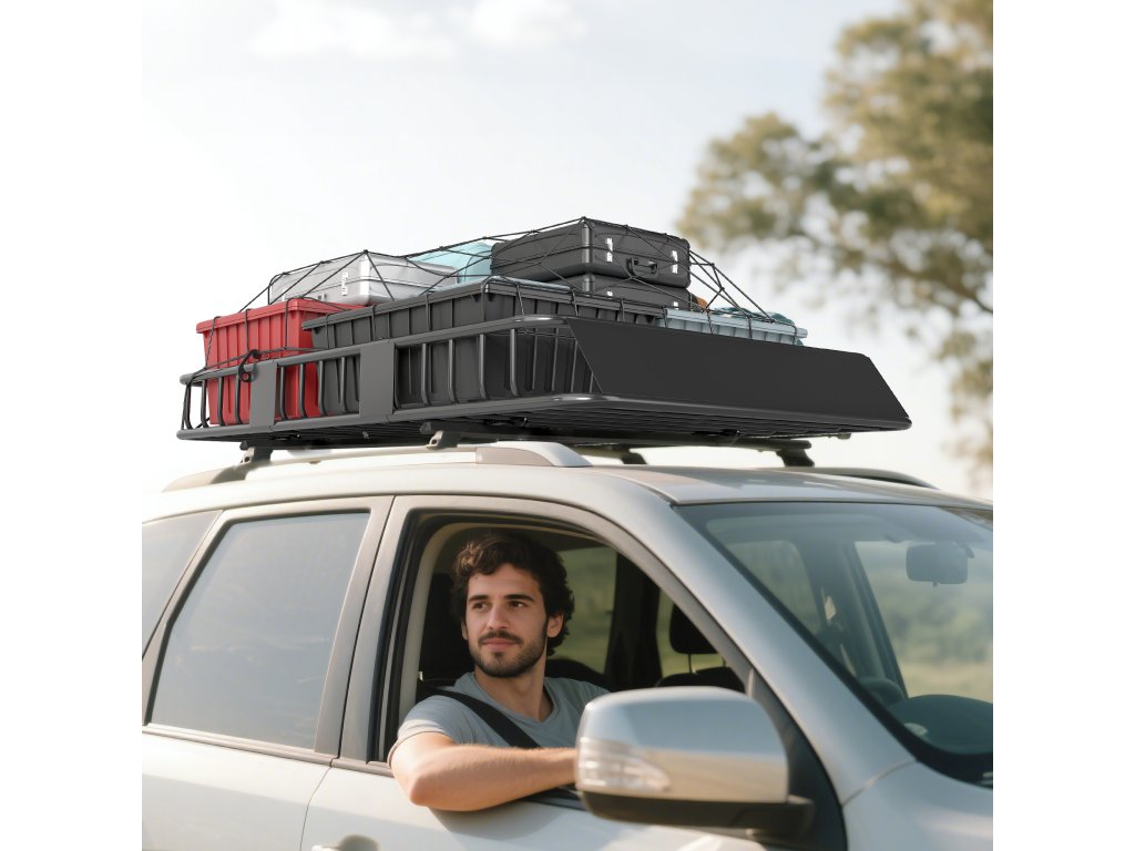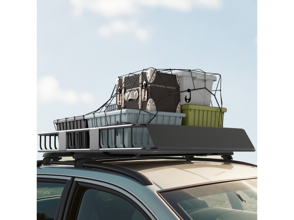 - Stabilní a flexibilní: Střešní nosič je vyroben z robustního kovu a unese až 100 kg. Jeho délku lze přizpůsobit různým modelům automobilů.
