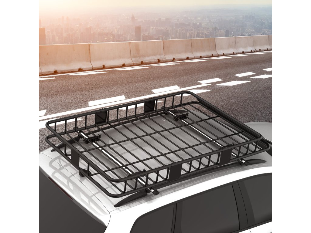 HOMCOM Střešní košík na auto s nastavitelnou délkou, univerzální střešní nosič, kovový košík na zavazadla, černý, 162x99x16cm| Aosom