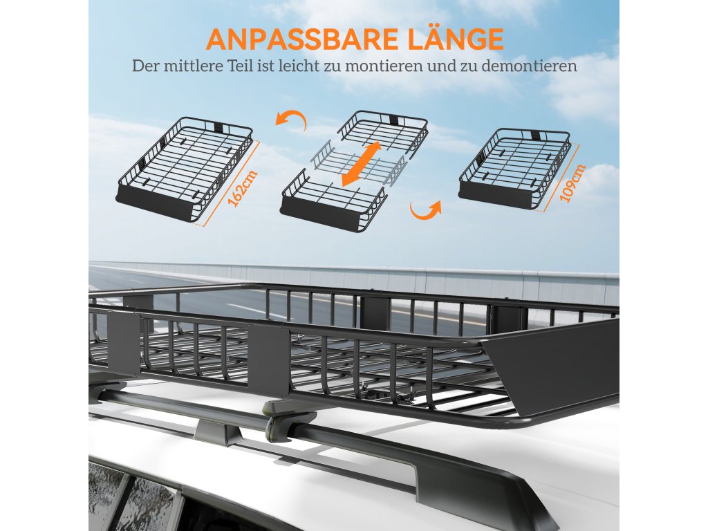 - Rychlá montáž: Montáž střešního nosiče na automobil zabere jen několik minut. Nastavitelná délka nosiče zavazadel.