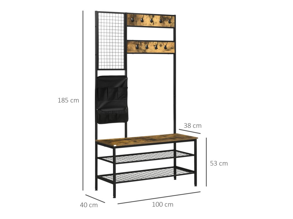 Je příjemné, když vás po dlouhém dni v práci přivítá vstupní prostor, kde má vše své místo. Mějte své kabáty, tašky, boty a drobné předměty přehledně uspořádané díky tomuto věšáku od společnosti HOMCOM. Tento věšák s botníkem, háčky na kabáty, paměťovou deskou a úložnou taškou je dokonalým řešením "vše v jednom" pro vstupní prostor. Boty můžete přezouvat vsedě a ukládat je do spodních přihrádek. Design ve vzhledu dřeva se hodí k mnoha stylům interiéru. Budete ho mít rádi jako součást svého interiéru.