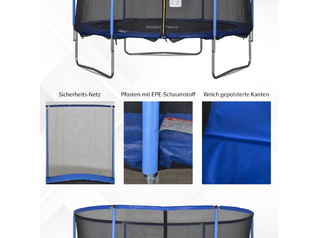 HOMCOM Trampolína s ochrannou sítí 305 cm pro zahradní a vnitřní použití, fitness trampolína do 113,6 kg, modrá černá | Aosom.de