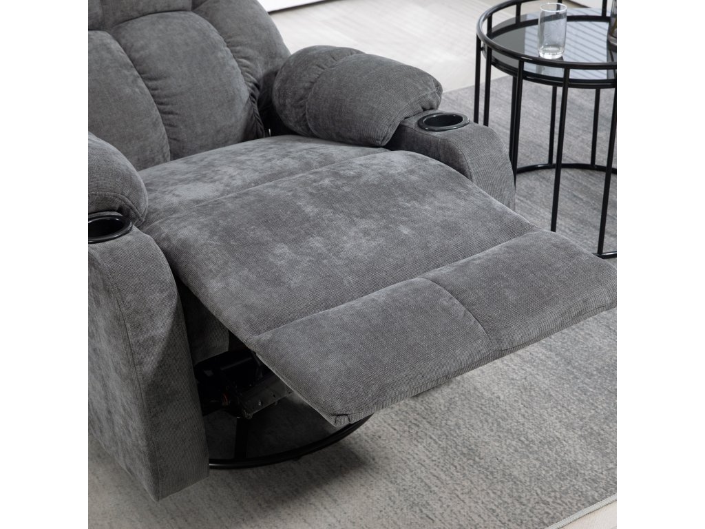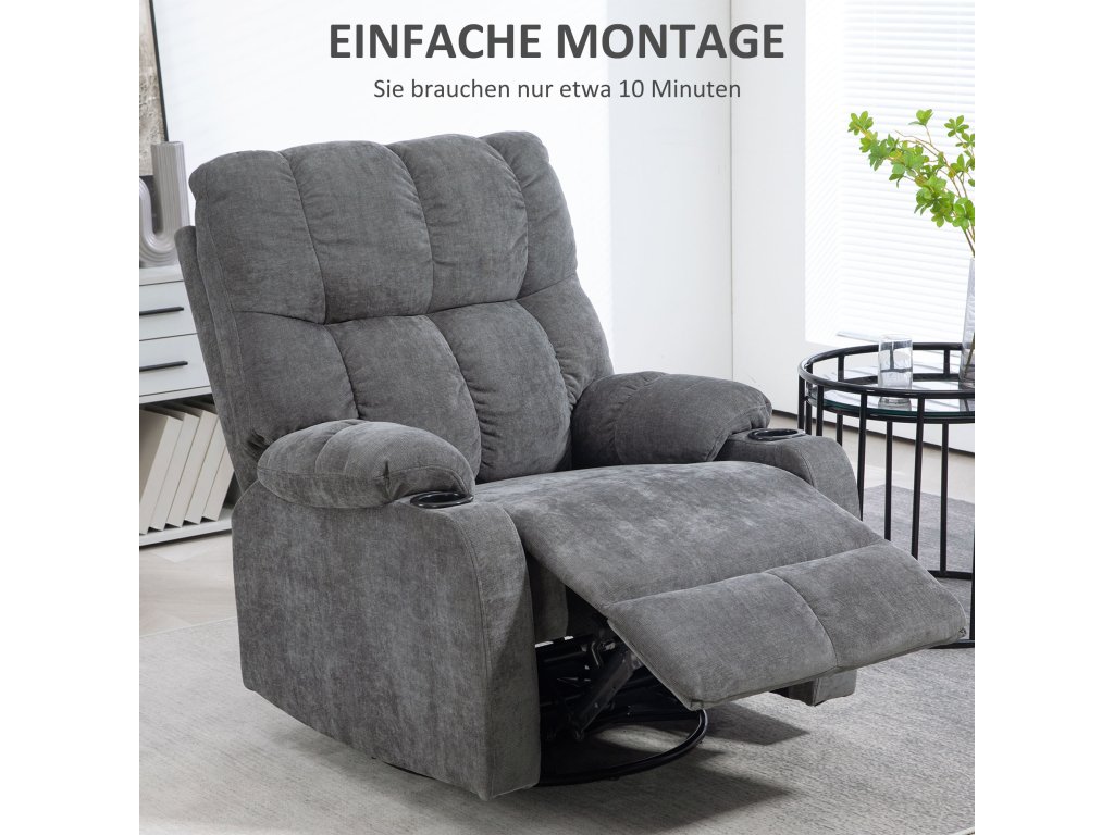 HOMCOM TV křeslo s funkcí polohování, otočné o 360°, naklápěcí o 135°, s pružinovým jádrem, elastické popruhy, držák na nápoje, 88x96x108cm Tmavě šedá| Aosom