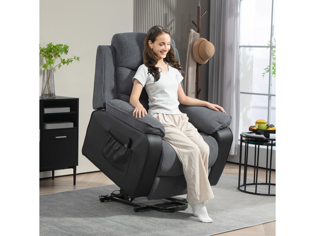 - Stylový design: Toto polohovatelné elektrické lehátko kombinuje manšestrový potah s elegantními okraji z umělé kůže, které dodají stylový nádech každé místnosti. Je vybaveno dálkovým ovládáním a praktickými dvojitými kapsami po stranách