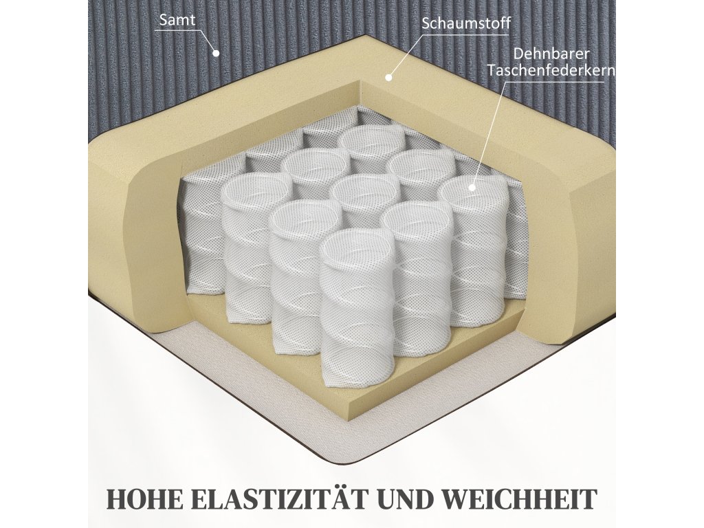 - ✔ Materiál: manšestrová tkanina (100% polyester), imitace kůže, pěna, kov