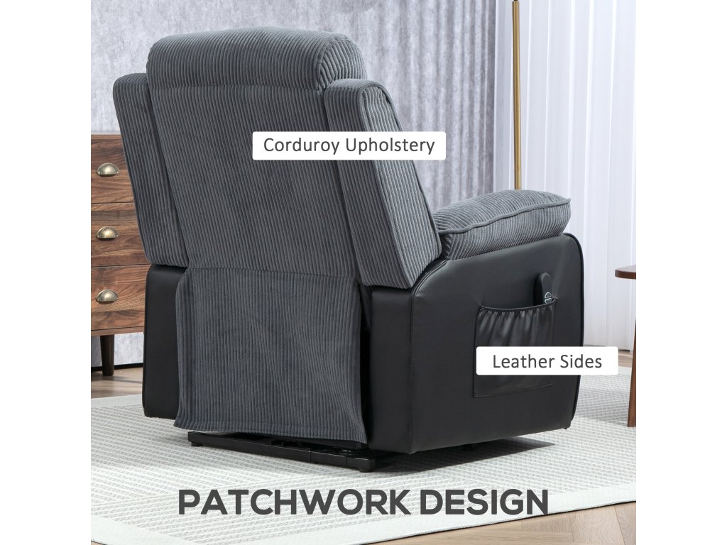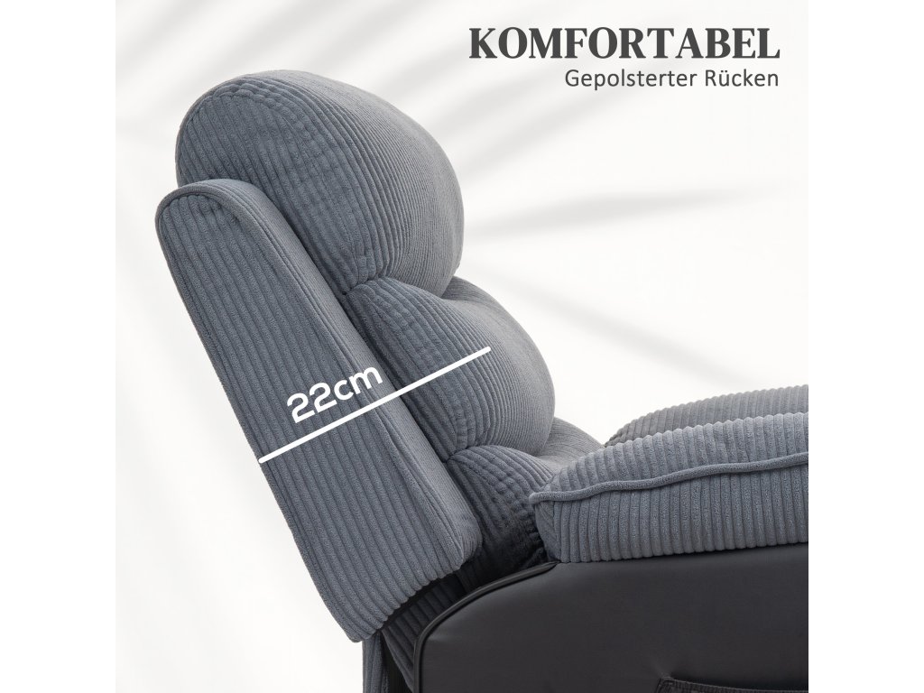 HOMCOM TV křeslo se stojánkem Elektrické polohovací křeslo s funkcí polohování, jádro z taštičkových pružin, TV křeslo s podnožkou, boční kapsou a dálkovým ovládáním, tmavě šedá barva