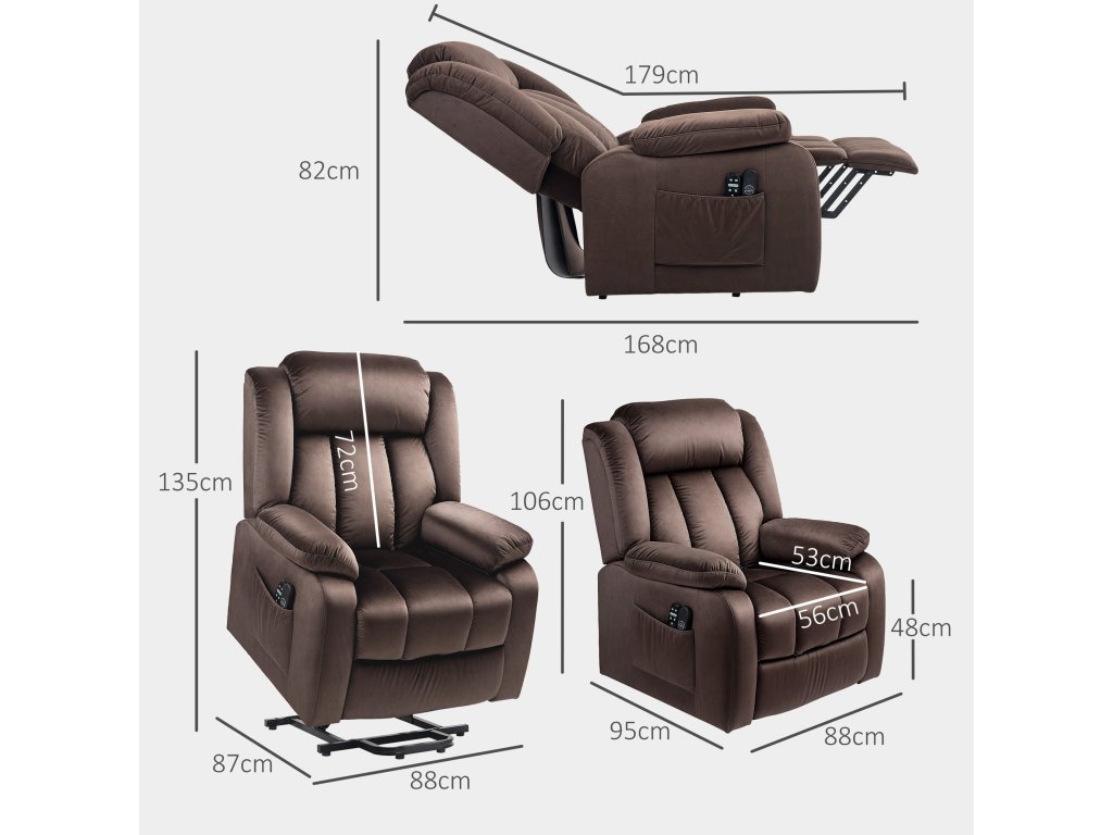 Užijte si mimořádné pohodlí s polohovacím křeslem HOMCOM! Můžete přejít z polohy vsedě do polohy ve stoje v úhlu 45° nebo si v klidu odpočinout s opěradlem nakloněným v úhlu 150°. Vyzkoušejte 8bodovou masážní funkci a vyhřívání bederní opěrky, které lze pohodlně ovládat dálkovým ovladačem. A díky sametovému látkovému potahu je toto masážní křeslo ideálním útulným útočištěm pro příjemné večery nebo krátké přestávky.