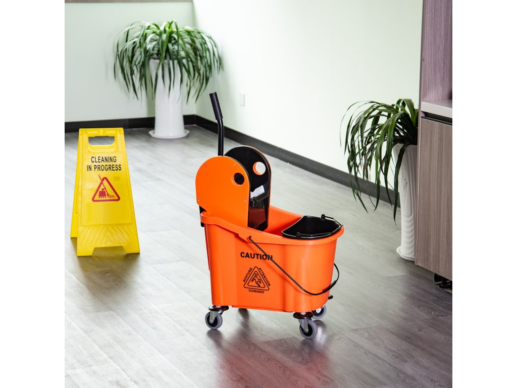 Vytvořte si profesionální úklid doma, v práci nebo v kanceláři s tímto průmyslovým úklidovým vozíkem od společnosti HOMCOM. Velký kbelík se ždímacím zařízením a rozdělovačem vody se snadno používá, zatímco kolečka usnadňují jeho přesun. Úklidový vozík udržuje čistou a špinavou vodu odděleně. Dovolte tomuto vědru, aby vám usnadnilo život.