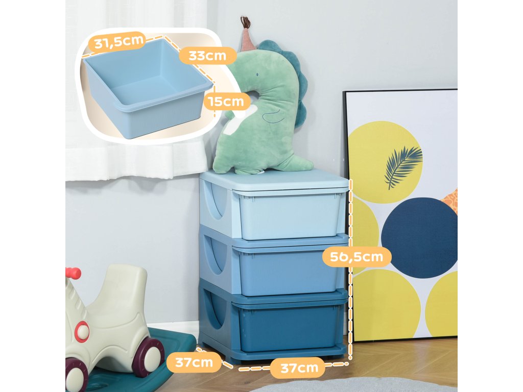 HOMCOM Úložný prostor na hračky, 3 úrovně, komoda do dětského pokoje, malá zásuvková skříňka pro děti, modrá | Aosom.de
