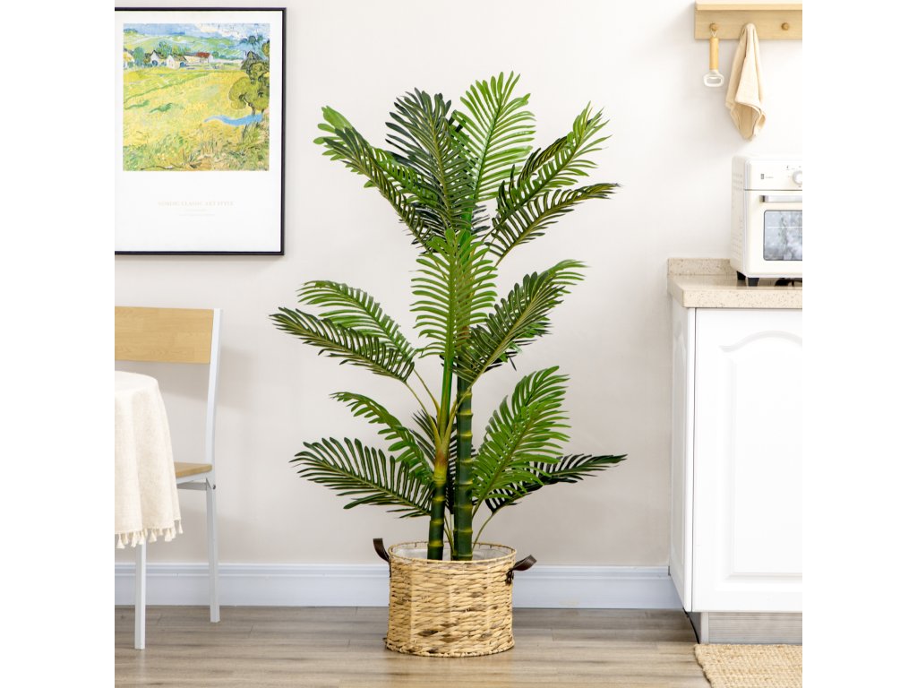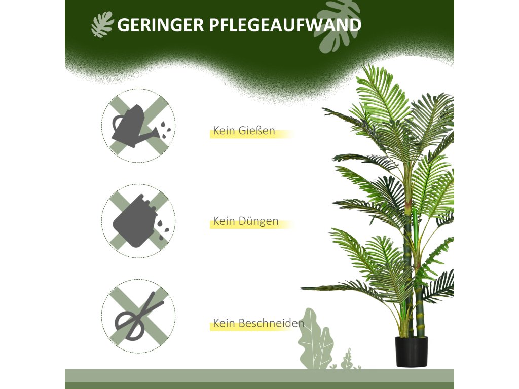 Tato umělá rostlina od společnosti HOMCOM je to pravé pro všechny milovníky rostlin, kteří nemají zelené prsty. Na rozdíl od skutečných rostlin tato rostlina nevyžaduje hnojení ani zalévání, přesto zůstane tato umělá rostlina vždy zelená a živá. Realisticky vypadající listy dodávají této palmě realistický vzhled, zatímco krásný černý květináč a cementová výplň zajišťují stabilní stojan. Tato stylová umělá rostlina zútulní každou domácnost.