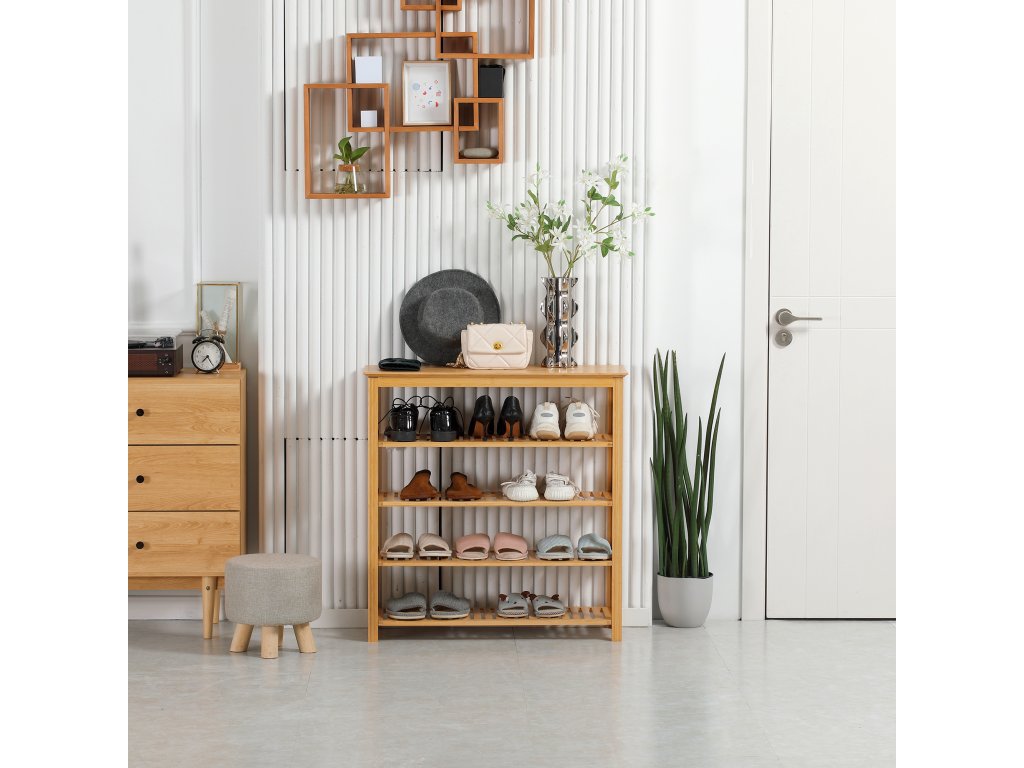 HOMCOM Věšák na boty 5 úrovní pro 20 párů bot Věšák na boty do předsíně z bambusu 80x29x82cm Příroda | Aosom.de