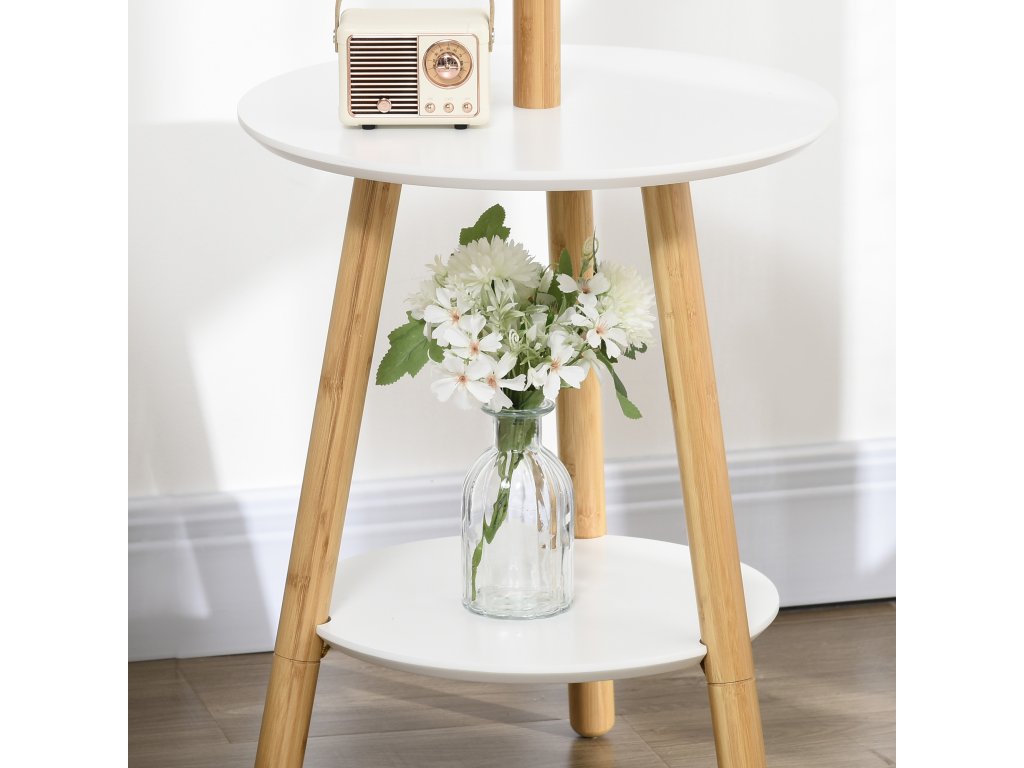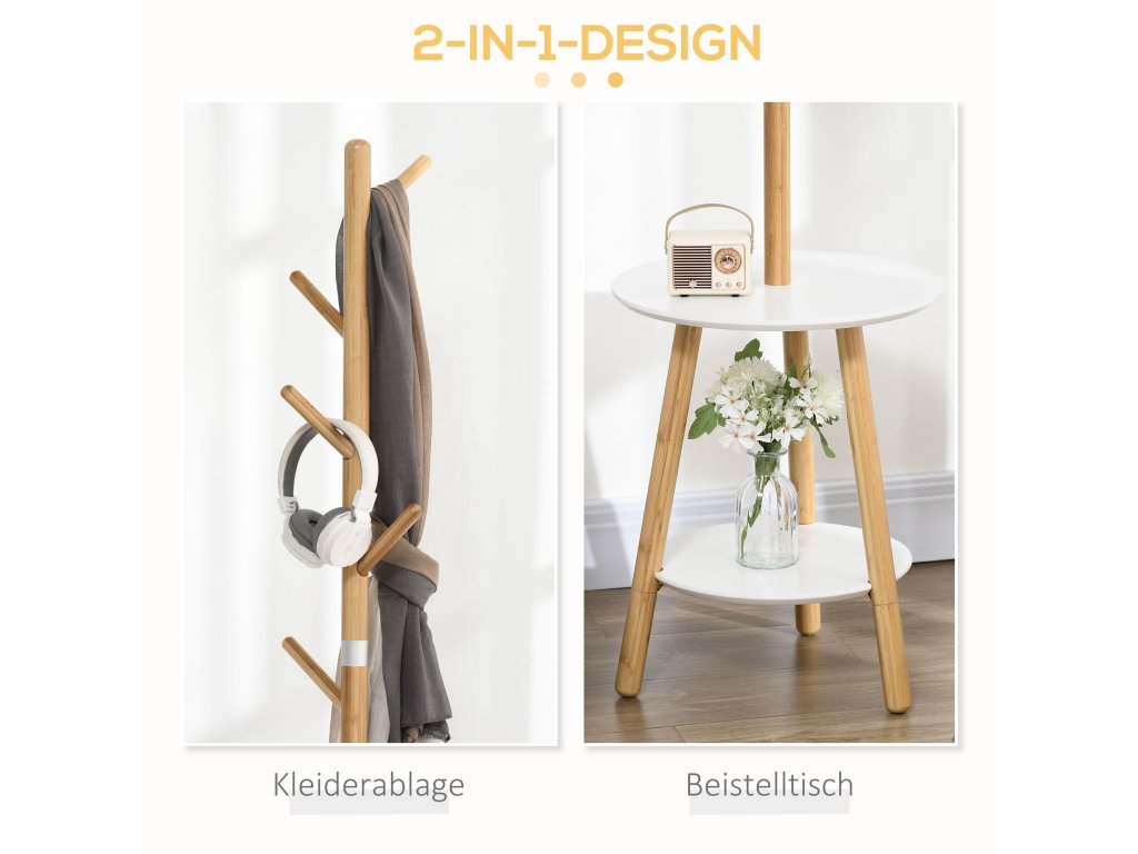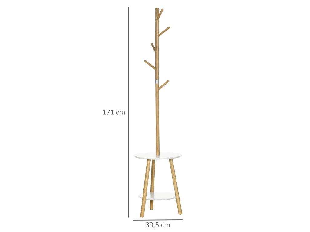 HOMCOM Věšák na kabáty Věšák s 5 háčky a bočním stolkem, výška 171 cm, přírodní+bílá| Aosom