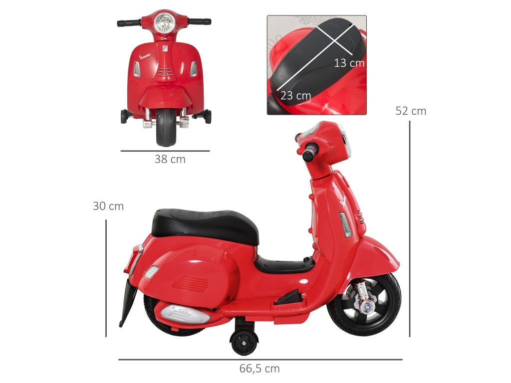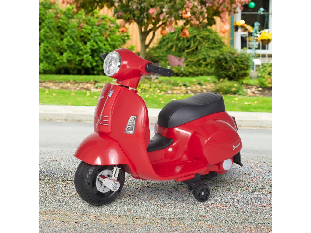 HOMCOM VESPA elektrická motorka dětská motorka elektrické vozidlo 18-36 měsíců 3 km/h LED světlo zvuk PP plast kov červená 66,5 x 38 x 52 cm | Aosom