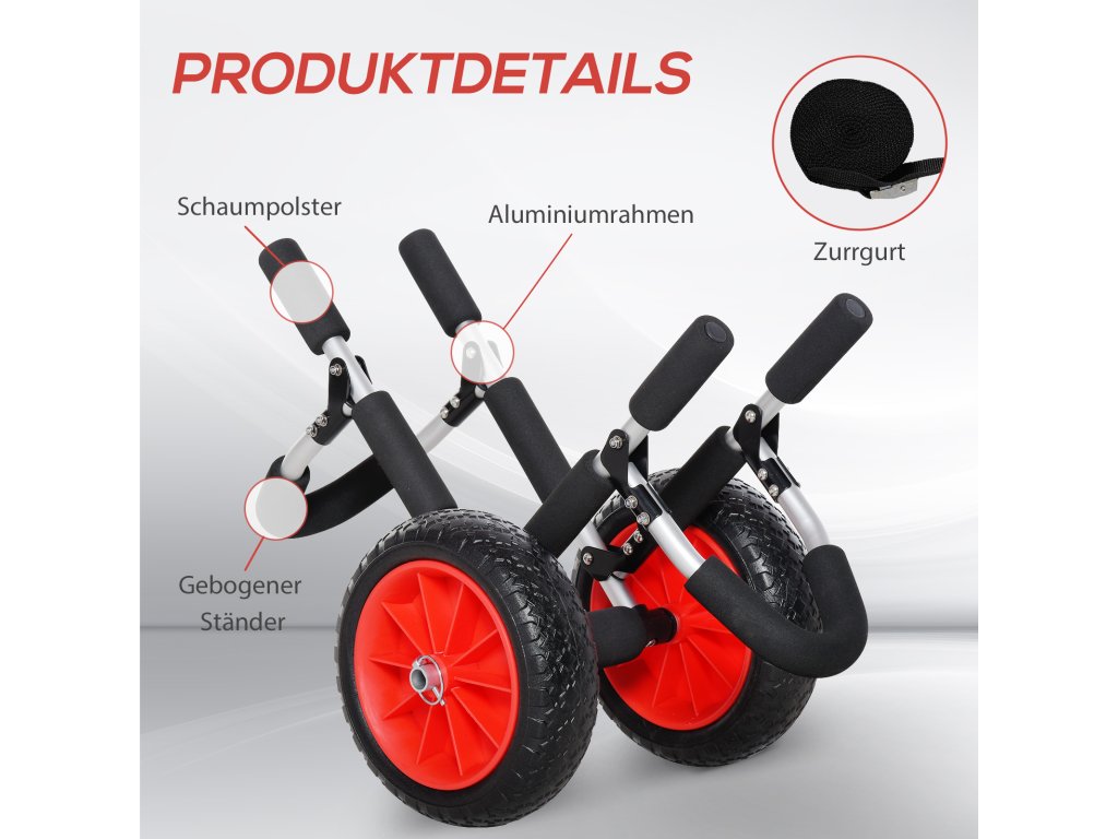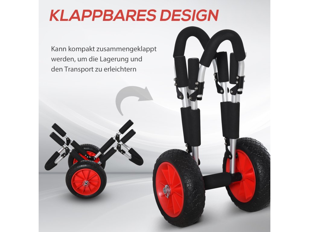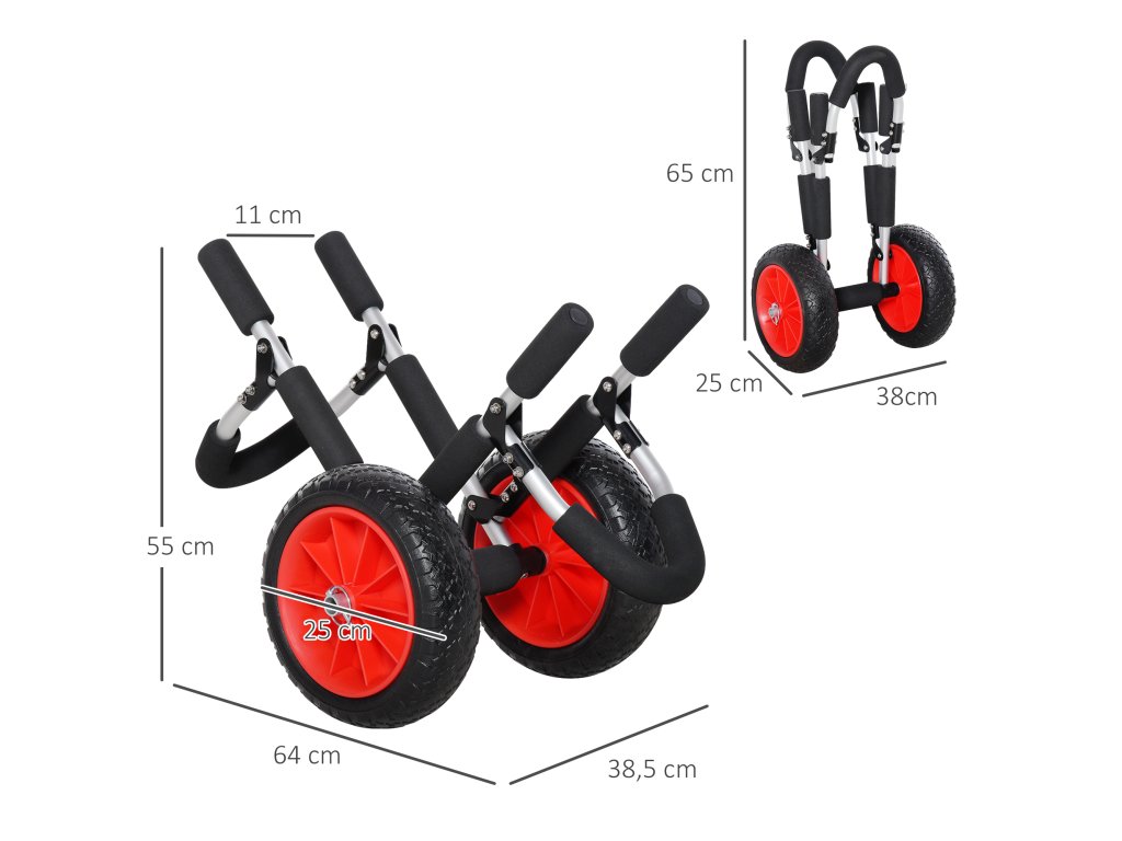 HOMCOM vozík na surfování vozík na přepravu surfovacích prken skládací polstrovaný s PU pneumatikami z hliníku do 45 kg D64 x Š55 x V38,5 cm pro pláž a outdoor | Aosom.de