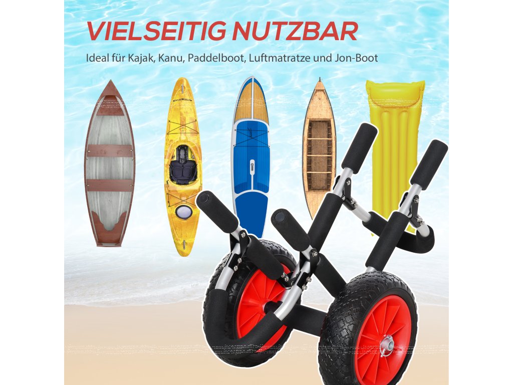 Tento vozík na surfování od společnosti HOMCOM je ideálním prostředkem pro přepravu vašeho vybavení pro vodní sporty. Robustní hliníkový rám je stabilní a odolný, přesto velmi lehký. Surfový vozík lze také velmi snadno složit a ušetřit tak místo, takže přeprava a skladování nejsou žádný problém. Pneumatiky ze syntetické kůže o průměru deset palců mají velkou plochu, a proto si snadno poradí s nerovným povrchem. Dodávaný elastický popruh vám pomůže udržet vše na svém místě. Na co ještě čekáte? Je čas vyrazit na pláž!