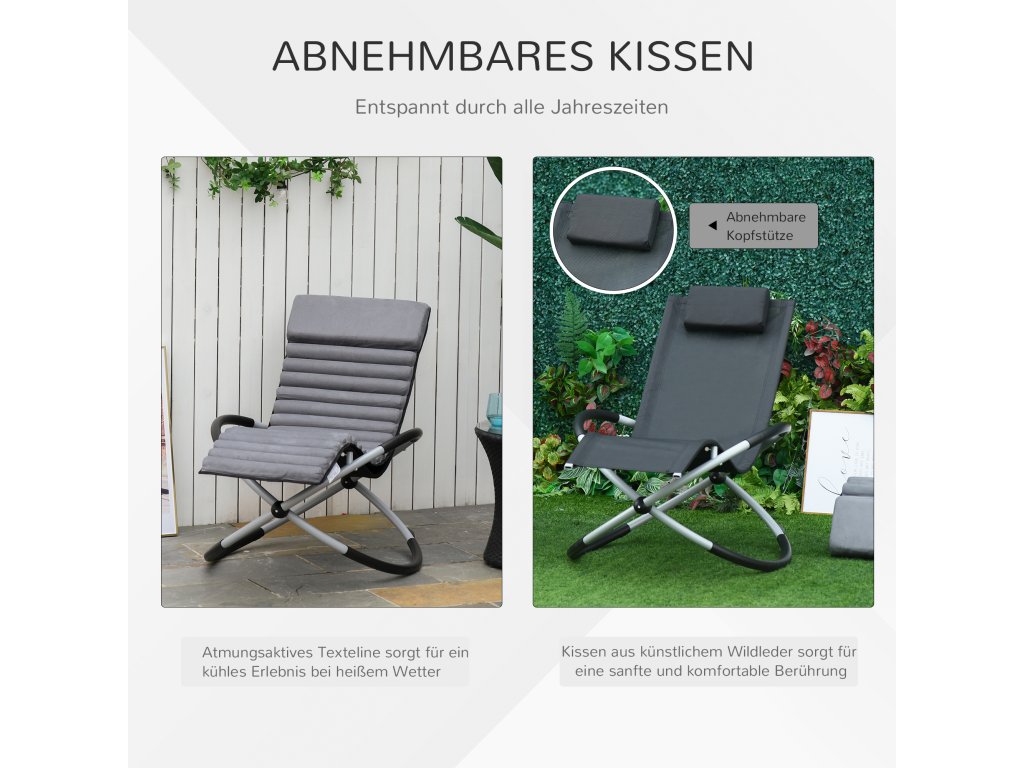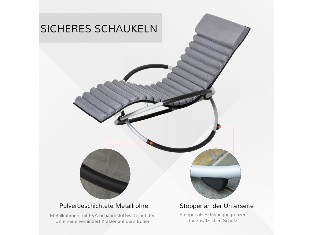 Houpací křeslo Outsunny ergonomické houpací křeslo 2 v 1 zahradní křeslo houpací lehátko kovové textilénové kulovité tmavě šedé 145x74x88 cm pro pohodlí na zahradě | Aosom.de