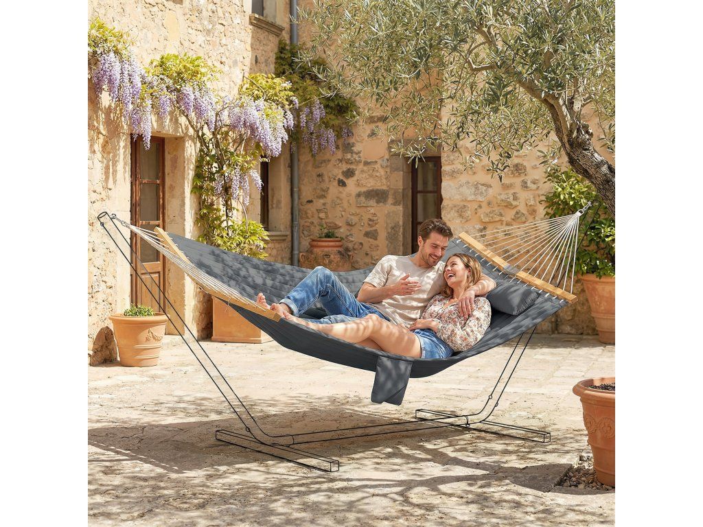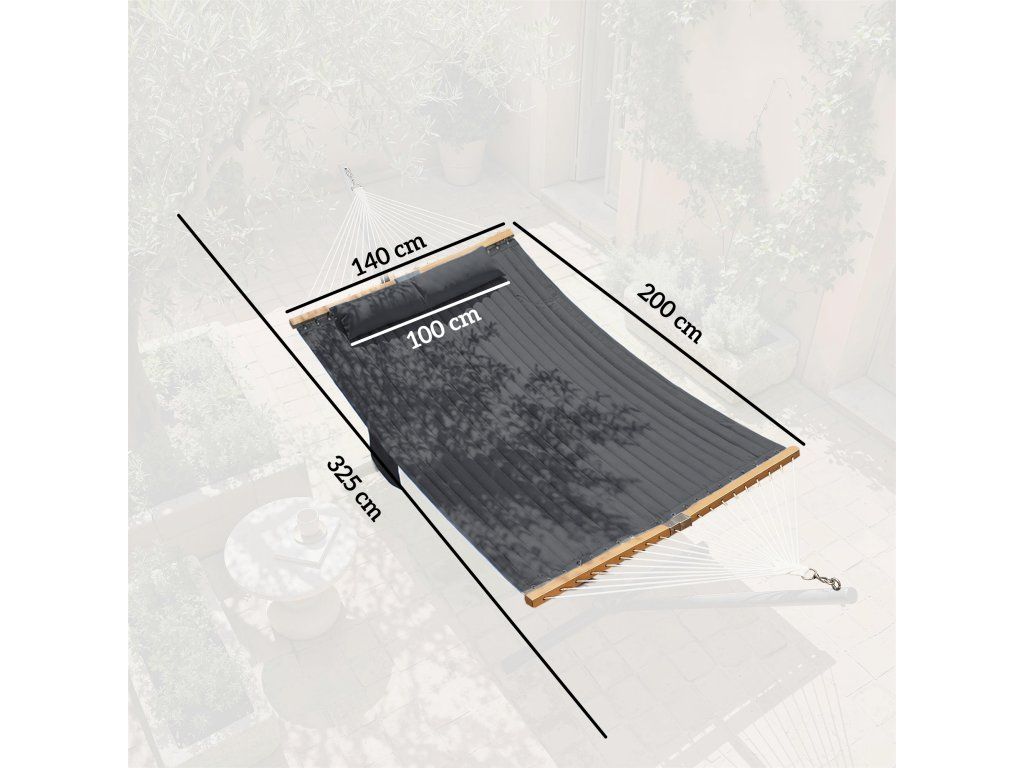 - ✔ Široké lůžko o rozměrech 200 x 140 cm nabízí prostor pro dvě osoby, velkorysý pro rozhovory v této venkovní houpací síti