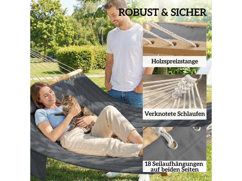 - ✔ Prošívaná dvouvrstvá konstrukce houpací sítě se 160 g výplně působí jako polštář, ideální houpací síť pro relaxaci