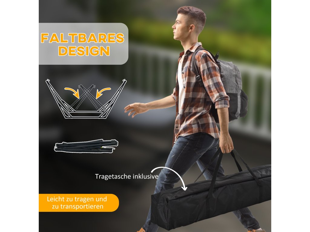 Houpací síť Outsunny s houpací sítí a taškou na přenášení, robustní ocel, nosnost až 120 kg, ideální na zahradu a balkon | Aosom.de