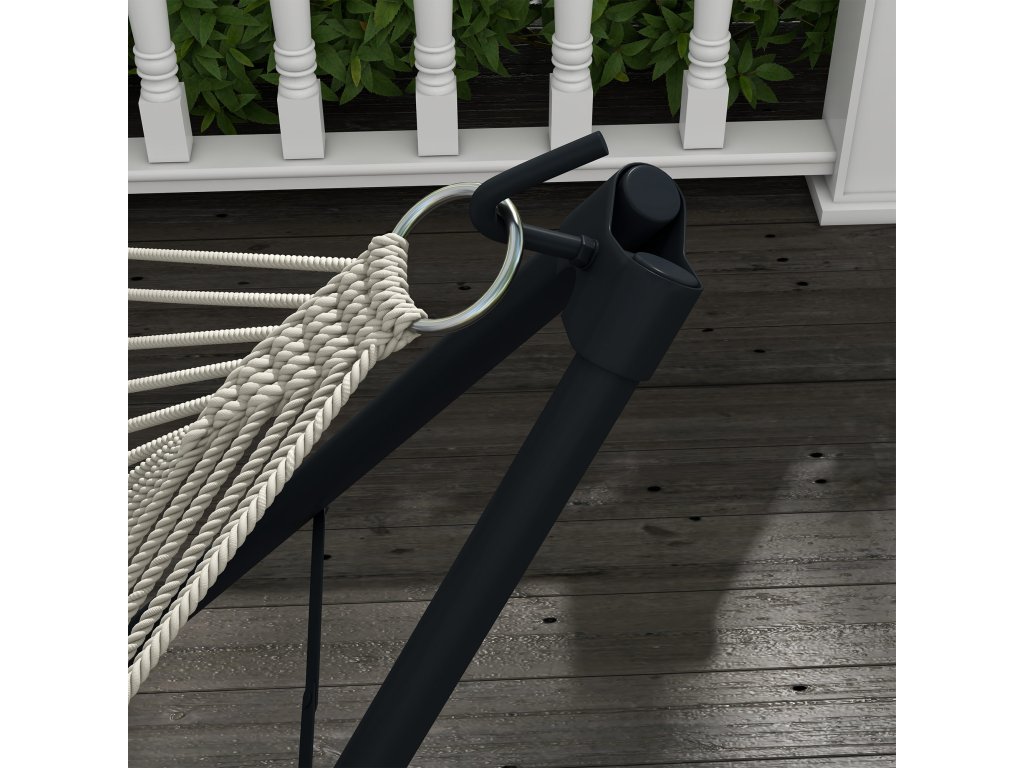 - Robustní konstrukce: Rám houpací sítě je vyroben z práškově lakované oceli se složitě zakřiveným designem. Díky tomu je tento výrobek obzvláště bezpečný a lze jej zatížit až 120 kg. V kombinaci s houpací sítí z nylonové tkaniny zaručuje tento výrobek bezpečné a pohodlné ležení.