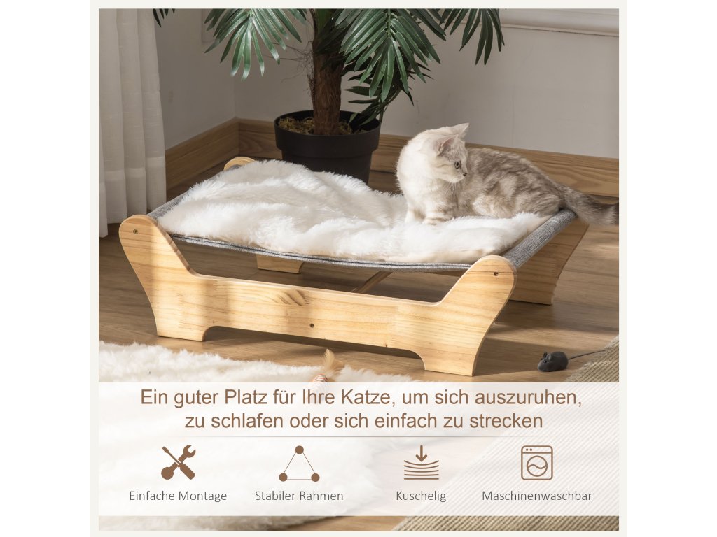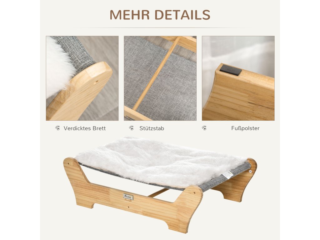 Houpací síť pro kočky PawHut s rámem pro kočky 68x43x20cm vyvýšené hnízdo pro kočky s měkkým polštářem z borovicového dřeva | Aosom.de