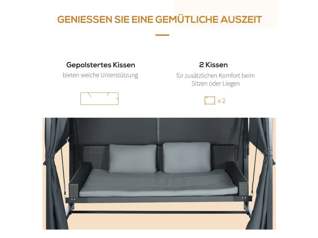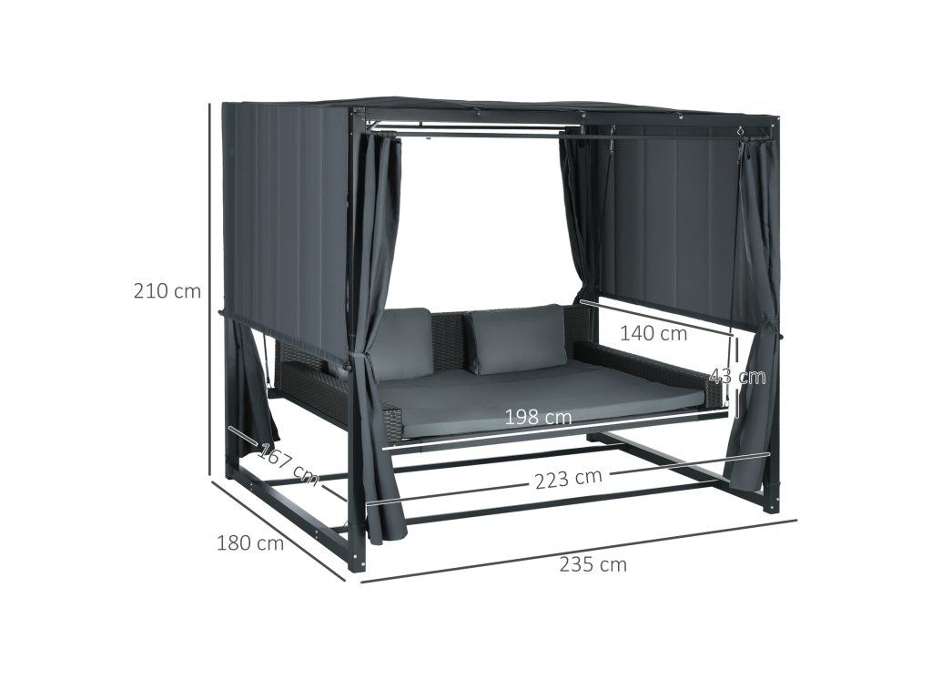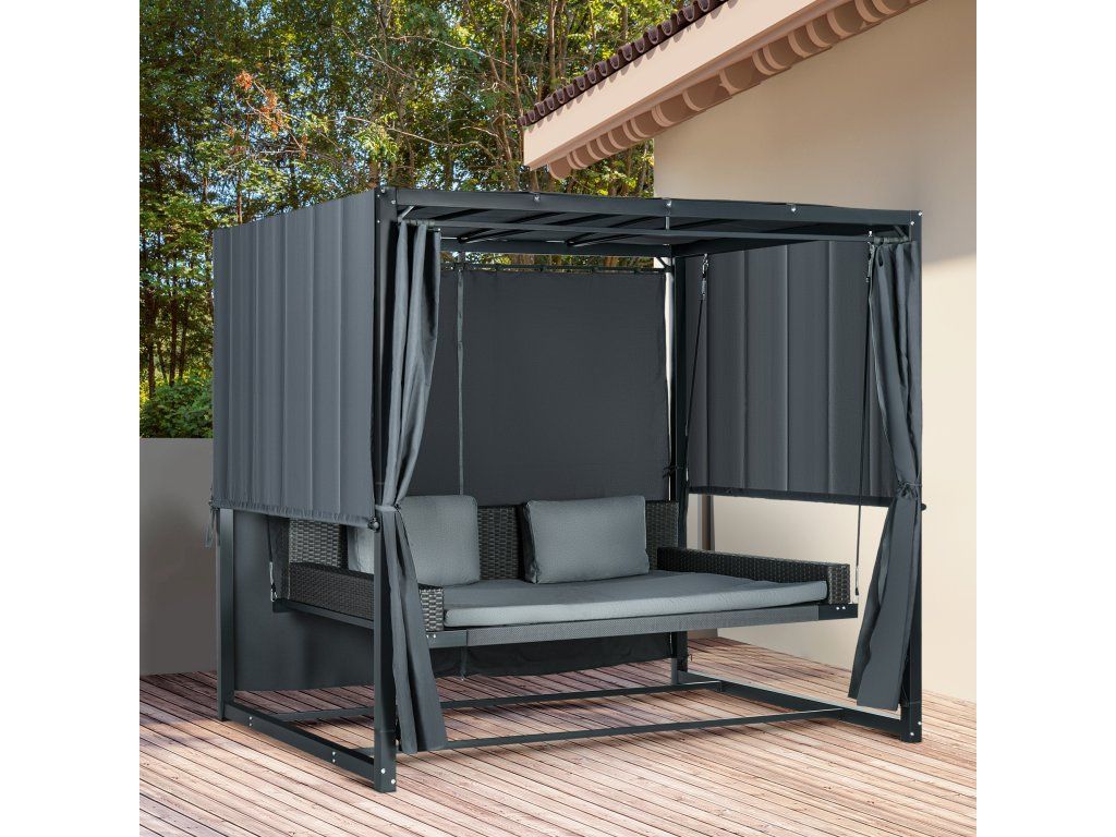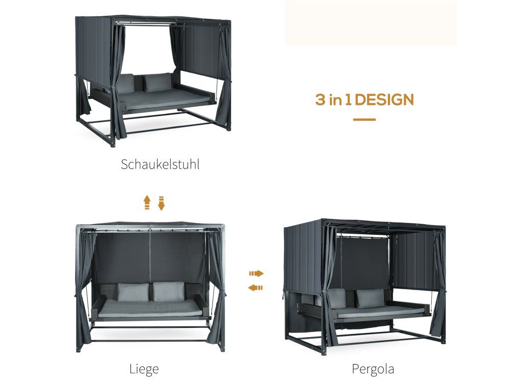Houpačka Outsunny Hollywood s pergolou, zahradní houpací lůžko odolné proti povětrnostním vlivům, včetně polštářů, 235 x 180 x 210 cm, tmavě šedá pro hodiny odpočinku na zahradě |