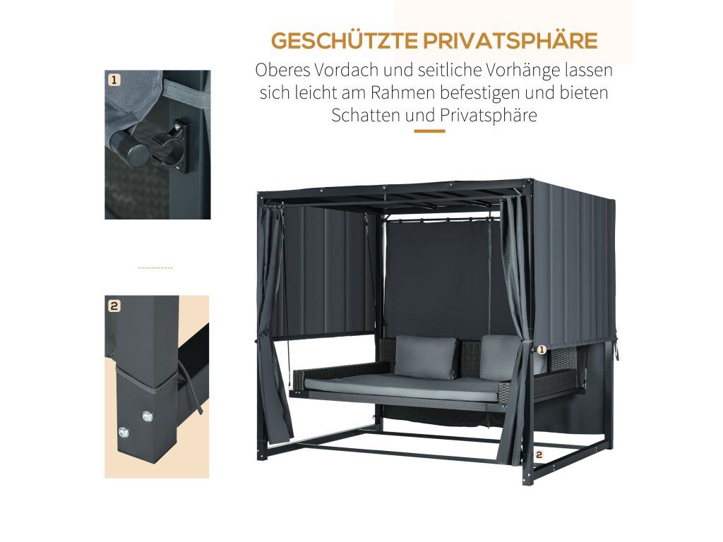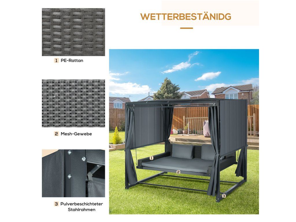 Relaxujte stylově s touto lounge soupravou. Na tomto venkovním houpacím lůžku od společnosti Outsunny si můžete užívat léto chráněni pod stříškou. Stříška a boční stěny vás ochrání před větrem, deštěm a nechtěnými pohledy. V případě potřeby můžete závěsy stáhnout a připevnit k rámu. Vaše rodina si chráněnou odpočinkovou zónu zamiluje. Užijte si chvíle pod širým nebem s touto lounge soupravou od společnosti Outsunny.