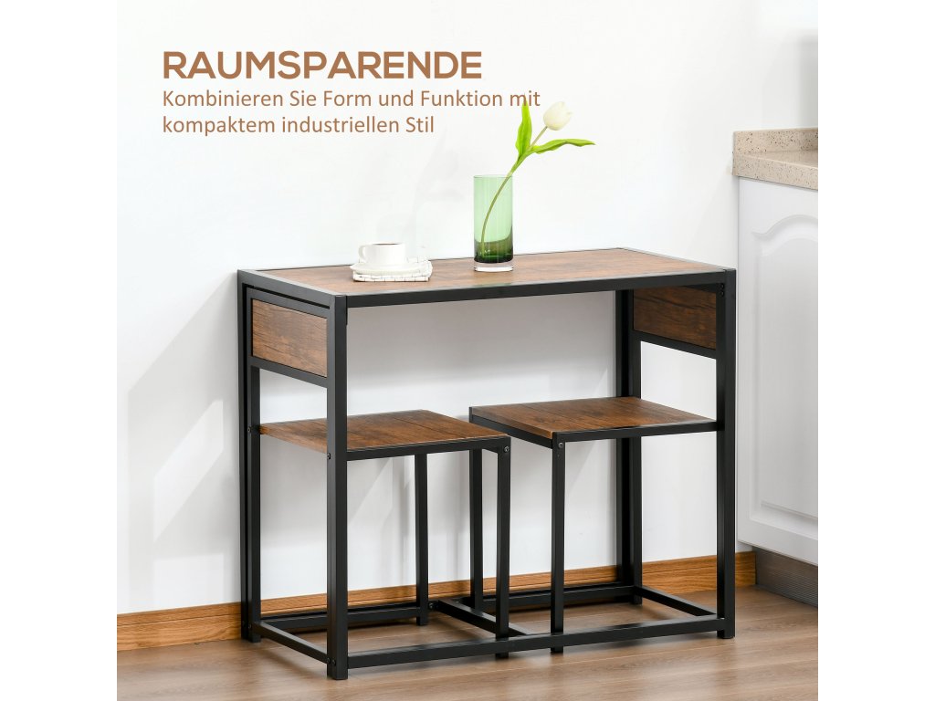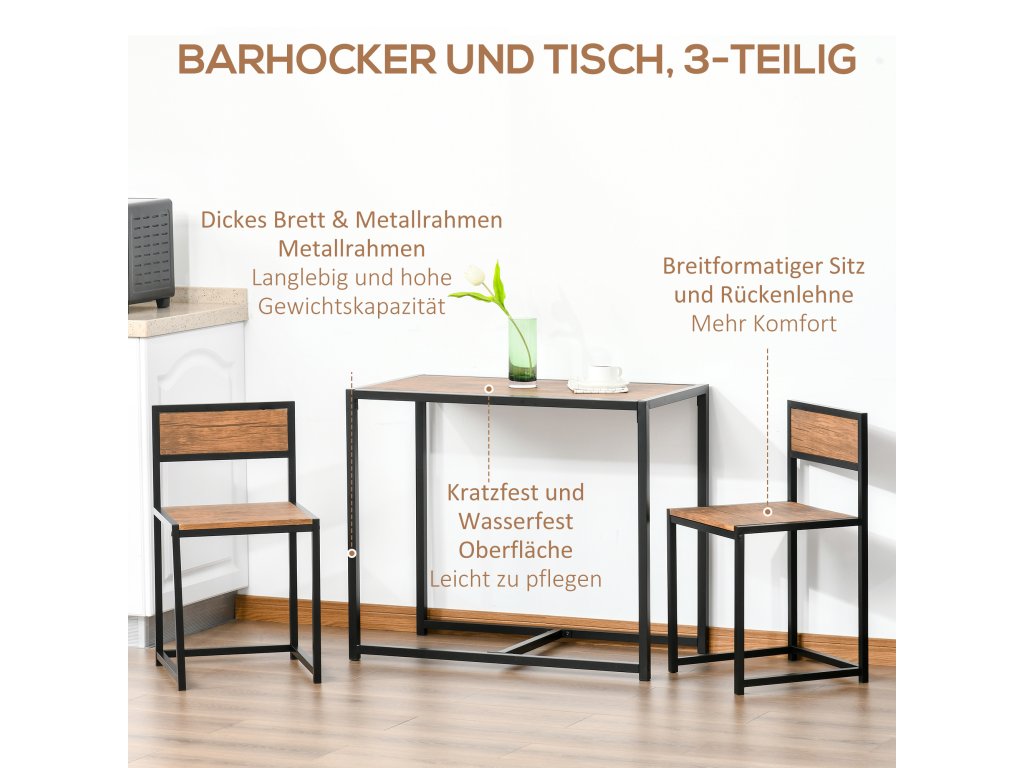 Jídelní set Kuchyňský stůl se 2 židlemi Jídelní set Jídelní set z kovu a přírodního dřeva pro malé pokoje | Aosom.de