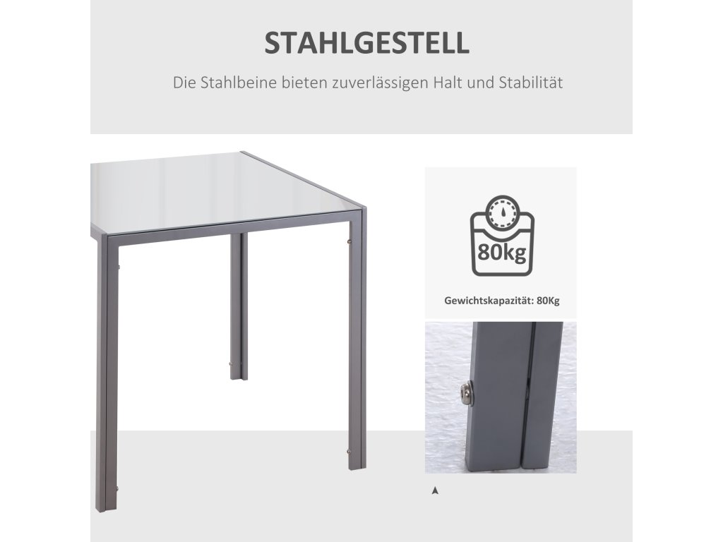 Jídelní stůl HOMCOM Jídelní čtvercový stůl pro 4 osoby, obývací stůl s deskou z tvrzeného skla, moderní do kuchyně a jídelny v šedé barvě |