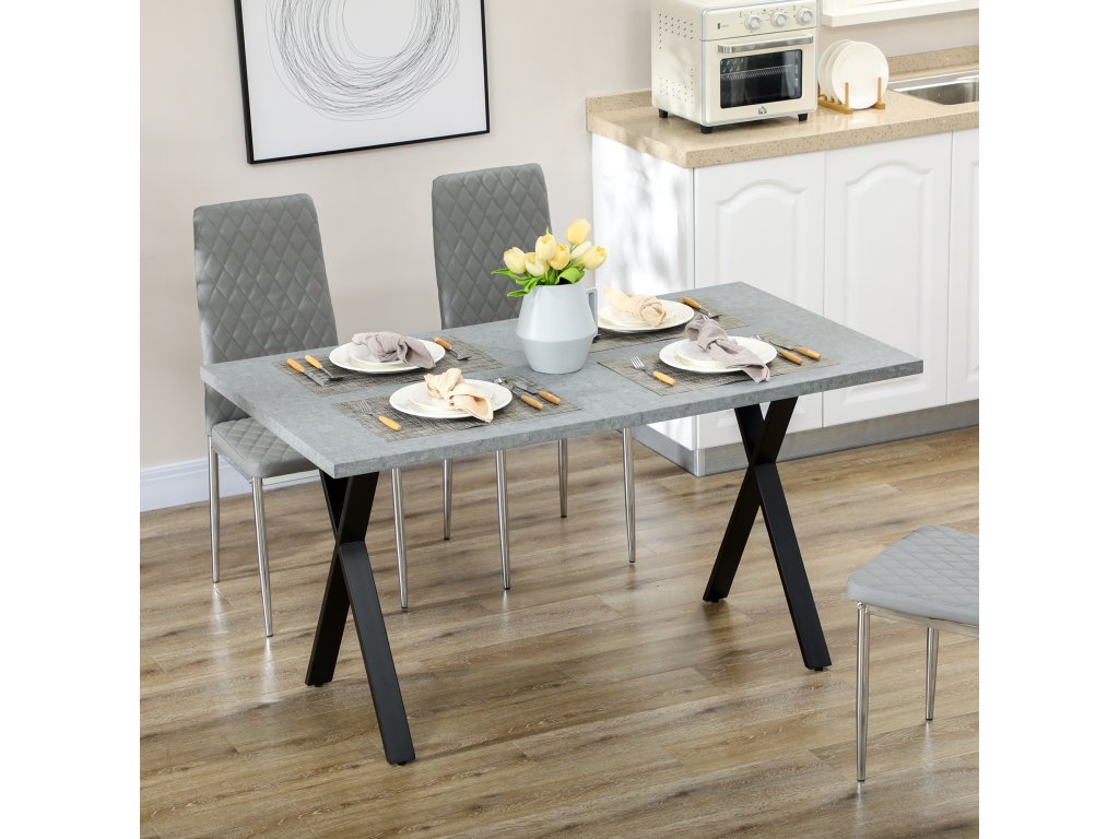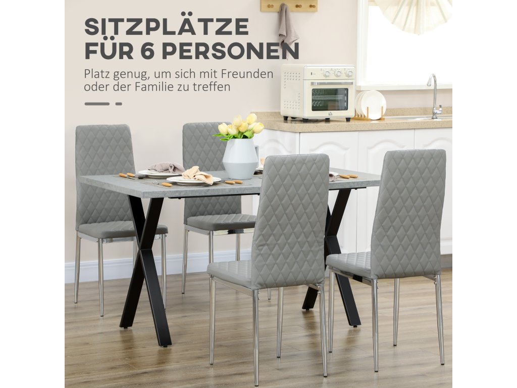 Jídelní stůl HOMCOM pro 6 osob ve vzhledu kamene s ocelovými nohami, šedý 140x80x76cm, moderní a stabilní pro jídelní kout | Aosom.de