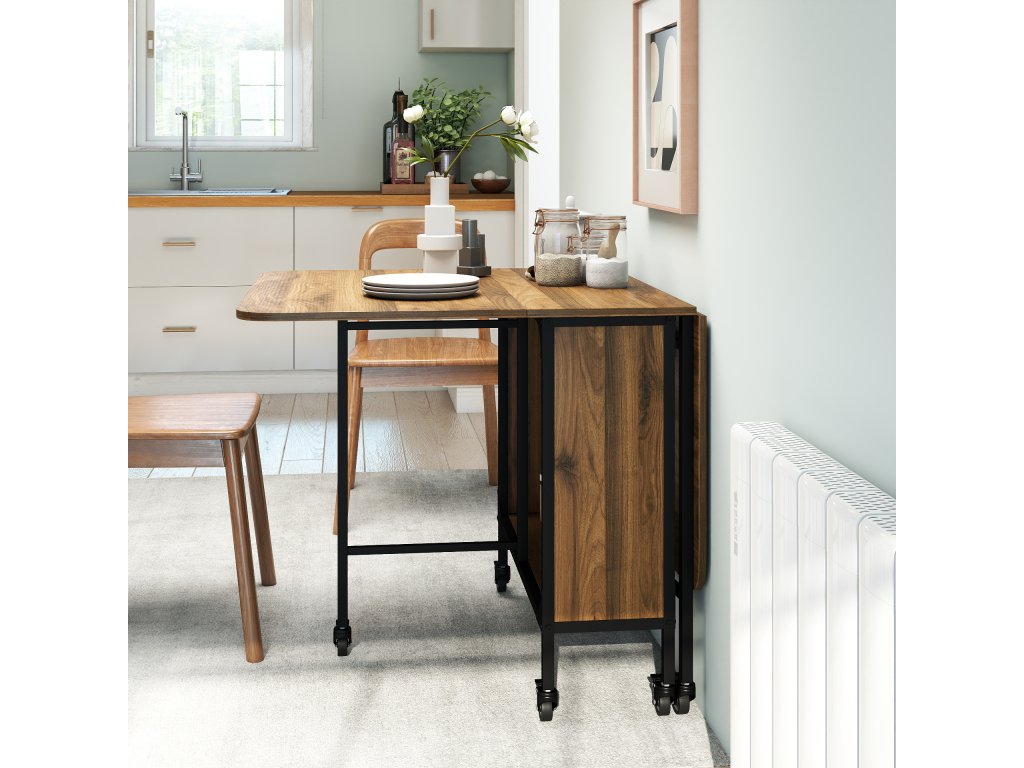 - Šest koleček: Tento kuchyňský stůl se snadno přemisťuje a je vybaven šesti brzdami, které ho udrží na místě. Lze jej použít jako jídelní stůl v kuchyni nebo jako přídavný stolek v obývacím pokoji