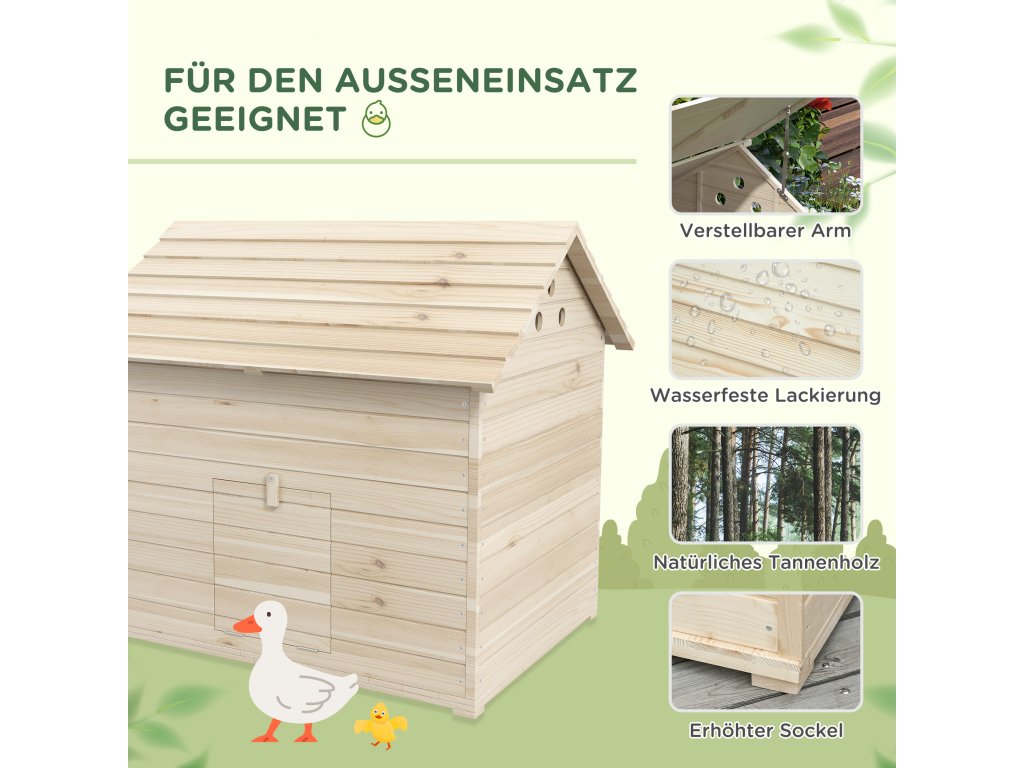 Kachní domek PawHut se sklápěcí střechou, drůbežárna se zvýšenou podlahou a rampou u vstupních dveří, kachní domek z jedlového dřeva, 100 x 82,5 x 91 cm
