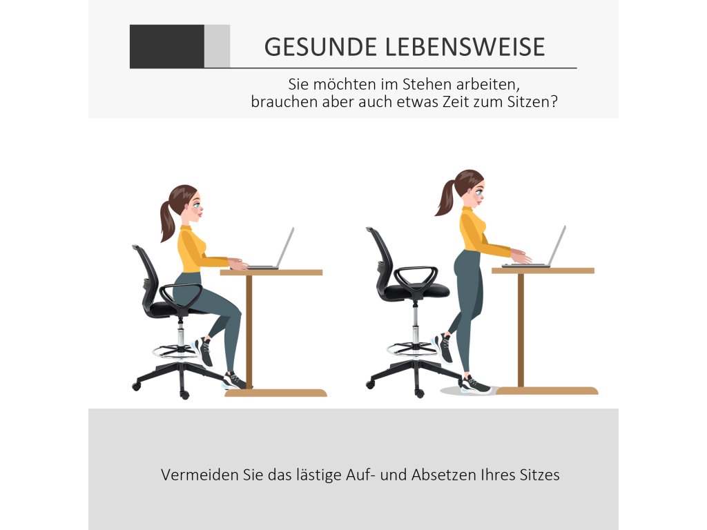 Kancelářská ergonomická otočná židle Vinsetto s nastavitelnou výškou a podnožkou kovová 59,5x60x102,5-126cm | Aosom.de