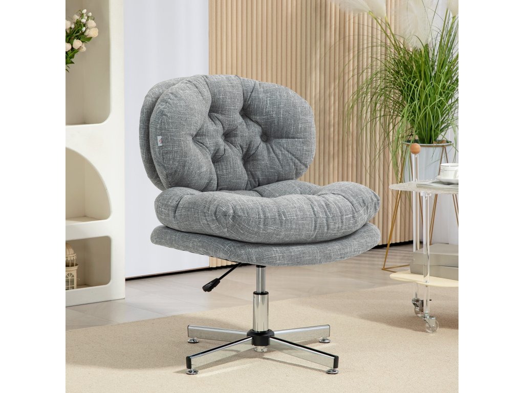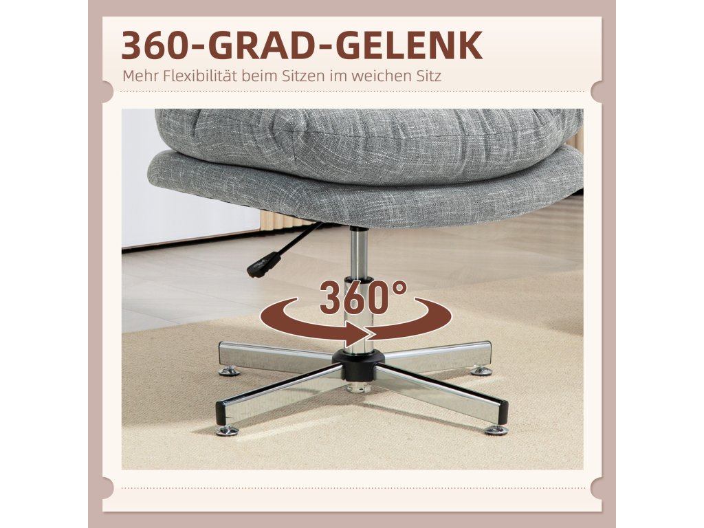 Kancelářská židle HOMCOM, ergonomická kancelářská židle s houpací funkcí, měkký a čalouněný sedák, výškově nastavitelná otočná židle se vzhledem lnu, pro domácí kancelář, šedá | Aosom