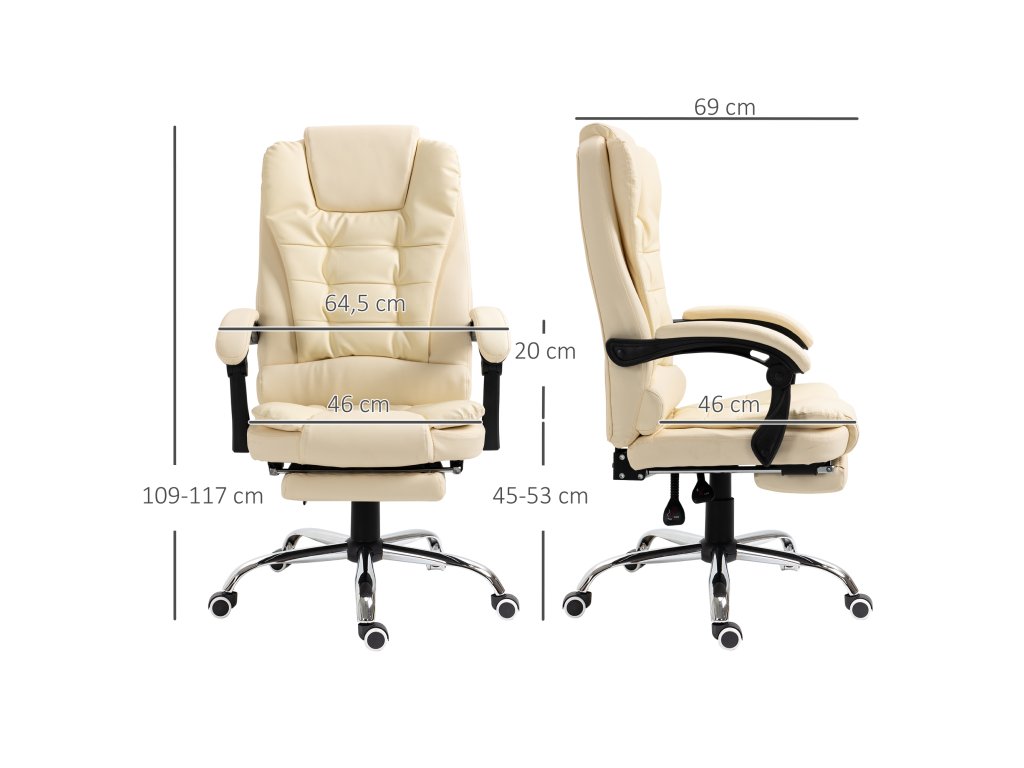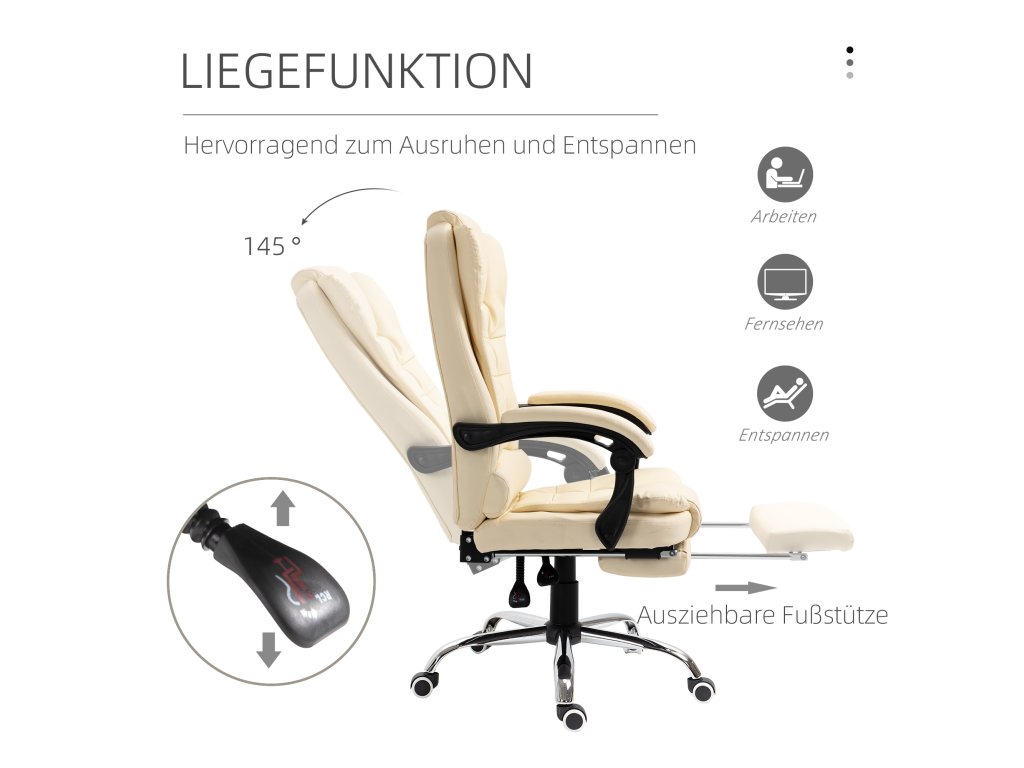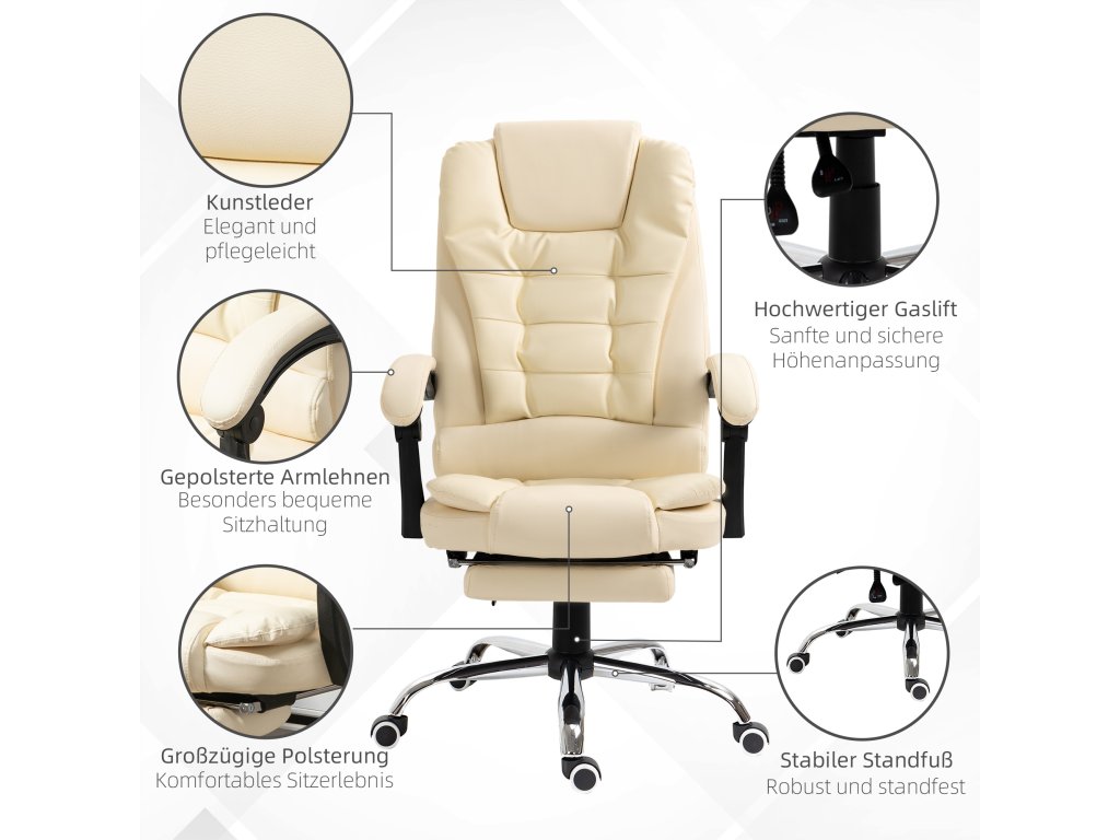 Kancelářská židle HOMCOM s podnožkou, výškově nastavitelná kancelářská židle s funkcí náklonu a područkami, koženka, ergonomická | Aosom.de