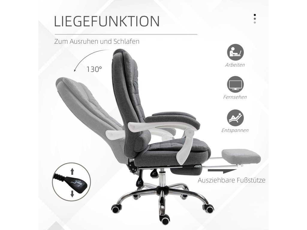 Kancelářská židle Vinsetto ergonomická kancelářská židle se sklopnou podnožkou, výškově nastavitelná a sklopná, kovově šedá pro pohodlí v domácí kanceláři | Aosom.de