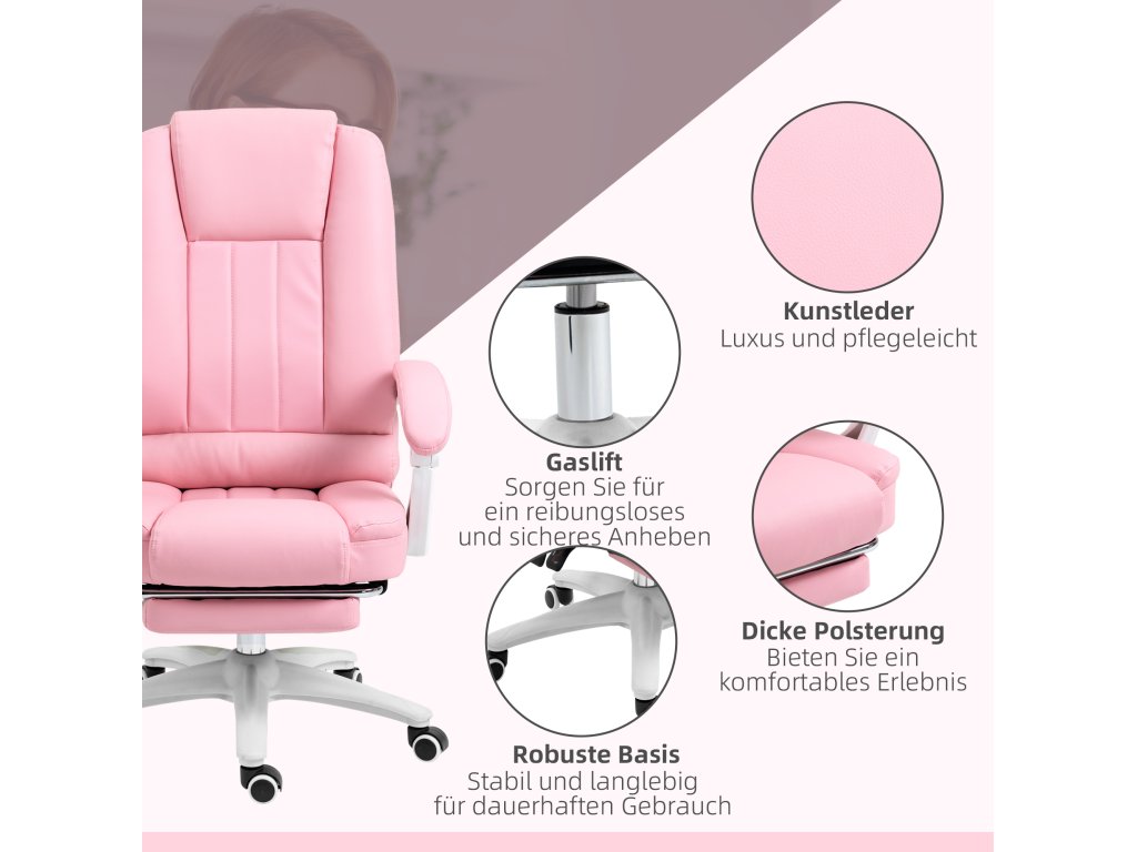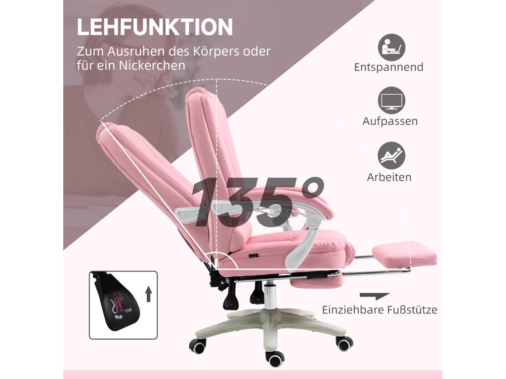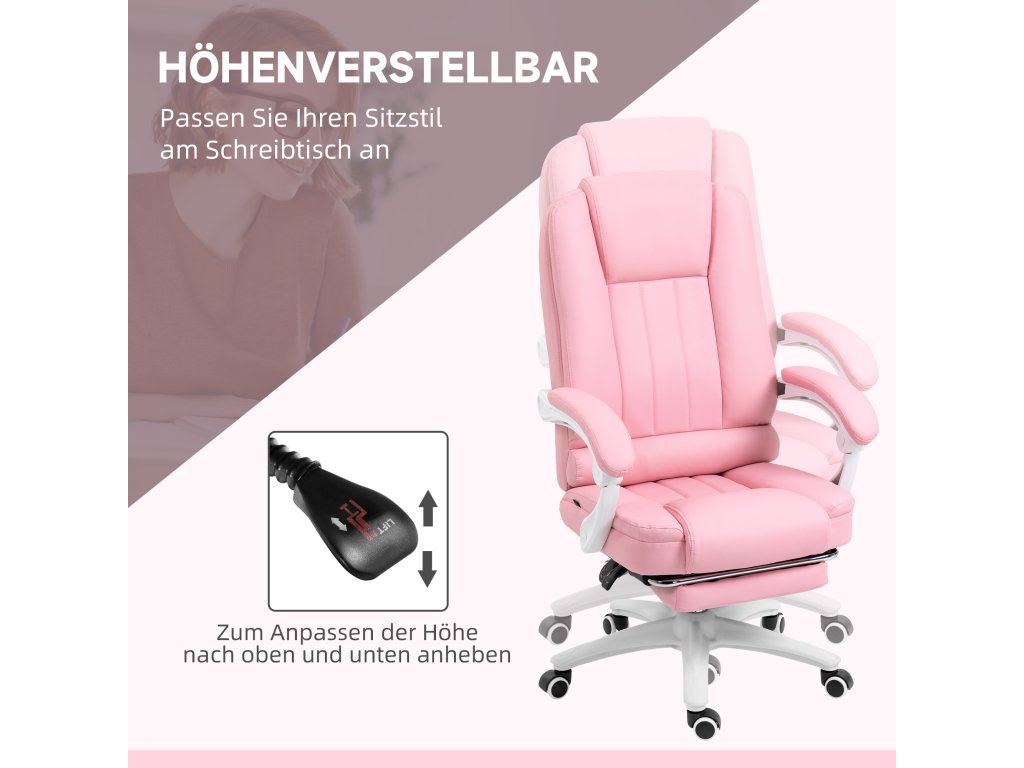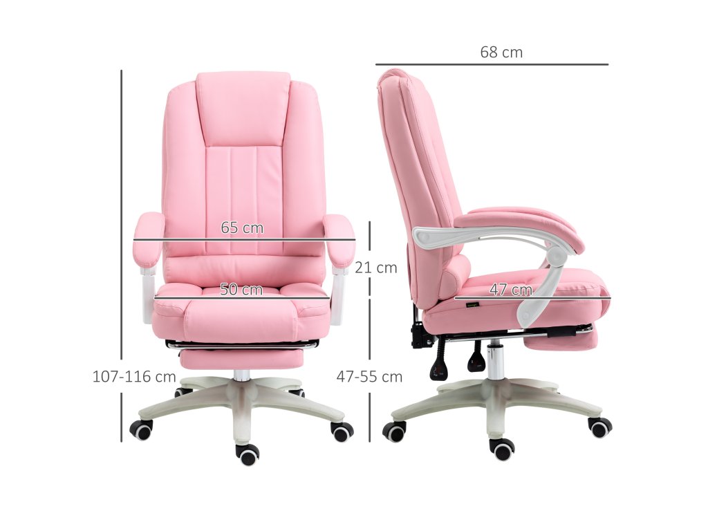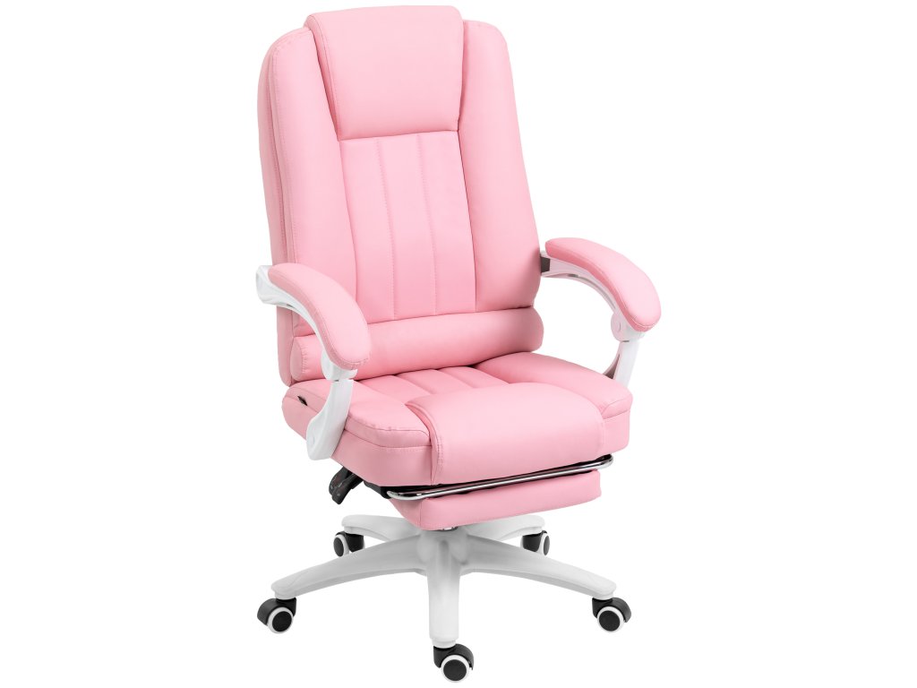 Kancelářská židle Vinsetto kancelářská židle podnožka polohovací funkce kolečka výškově nastavitelná umělá kůže růžová | Aosom